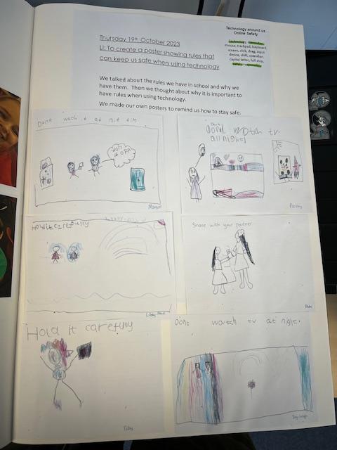 Online safety is embedded in the Computing lessons taught each week together with some elements covered as part of the PSCHE Jigsaw scheme. To ensure complete coverage of the eight different elements of online safety, discrete online safety lessons are also taught each half-term and recorded in the class workbooks.