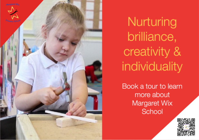 Margaret Wix Primary School is a successful, vibrant school - a school where children come first. We have a highly motivated, resourceful, and committed team of staff and governors who care about and nurture the needs of every child, inspiring their creativity and brilliance in everything they do. Our school has a special feel - each child is valued as an individual and we pride ourselves on knowing all of them very well - considering their happiness and well-being with every decision we take.