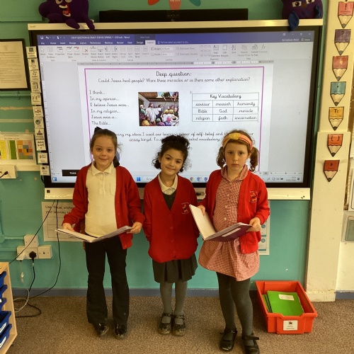 In RE, we have been looking at Christianity and the life of Jesus. We explored the miracles he performed and discussed the Deep Question: “Were these miracles, or was there another explanation?” Our findings indicated that it came down to a matter of faith and the beliefs of different religions as to what actually happened. It certainly led to some excellent debating and lots of great discussion in class.