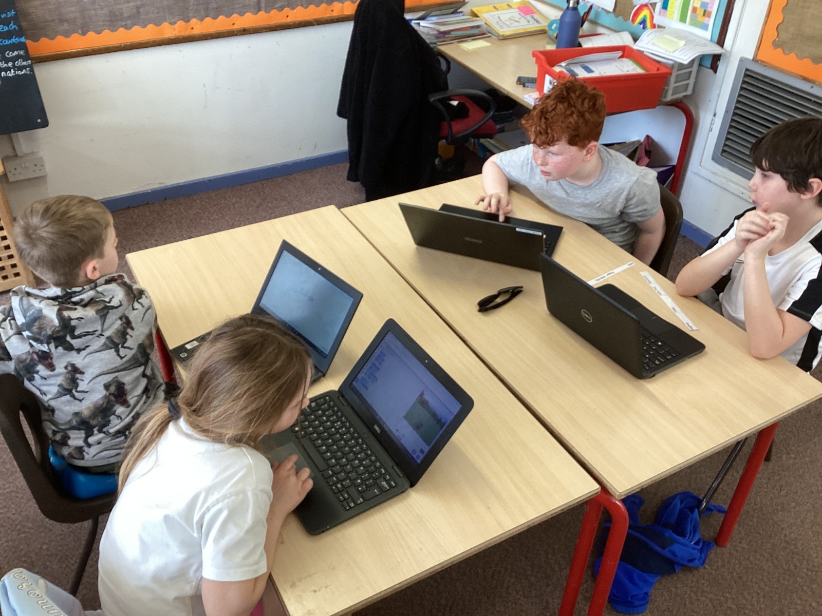In DT, children have been learning to design, make and evaluate wearable technology in the digital world. They used coding to programme a micro-bit to fit a design criteria. They have been learning to understand the impact of the digital revolution in the world and how technology has improved over time.