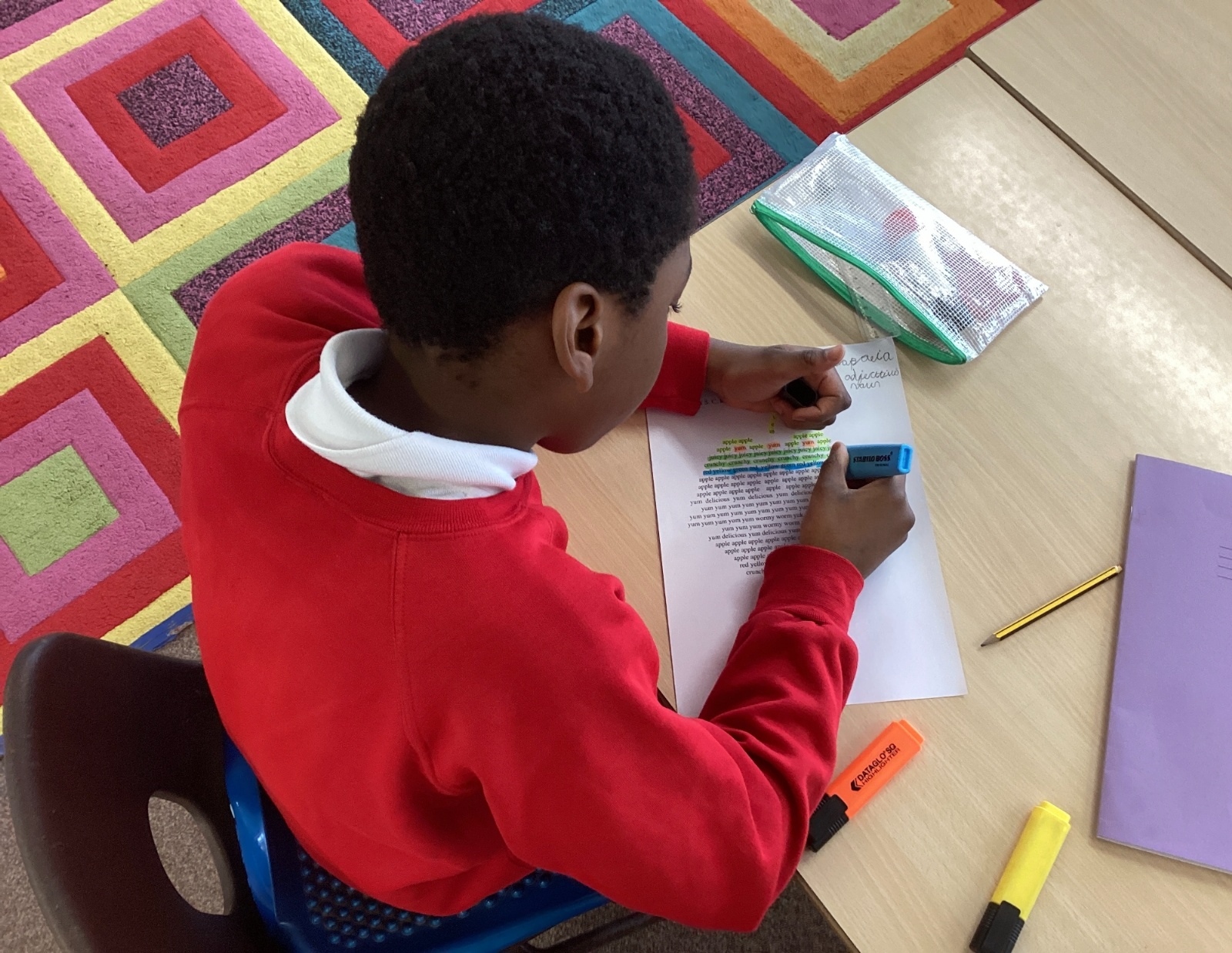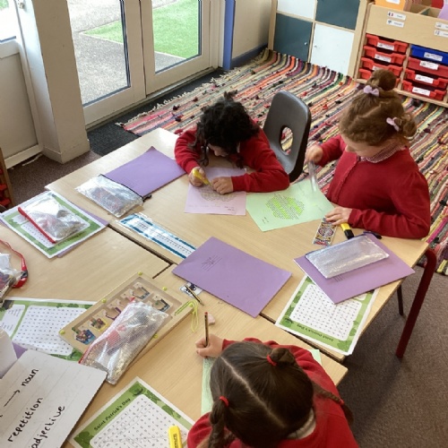 During the last week, we have been learning about different poems with the focus on, ‘The Magic Box.’ They have been looking closely at poems to identify features such as alliteration, repetition, onomatopoeia, rhyme, and free verse. Children have written their own poems in this style.