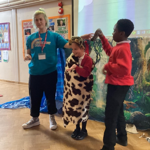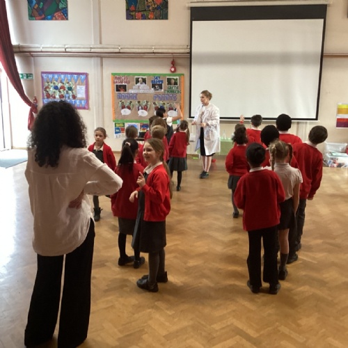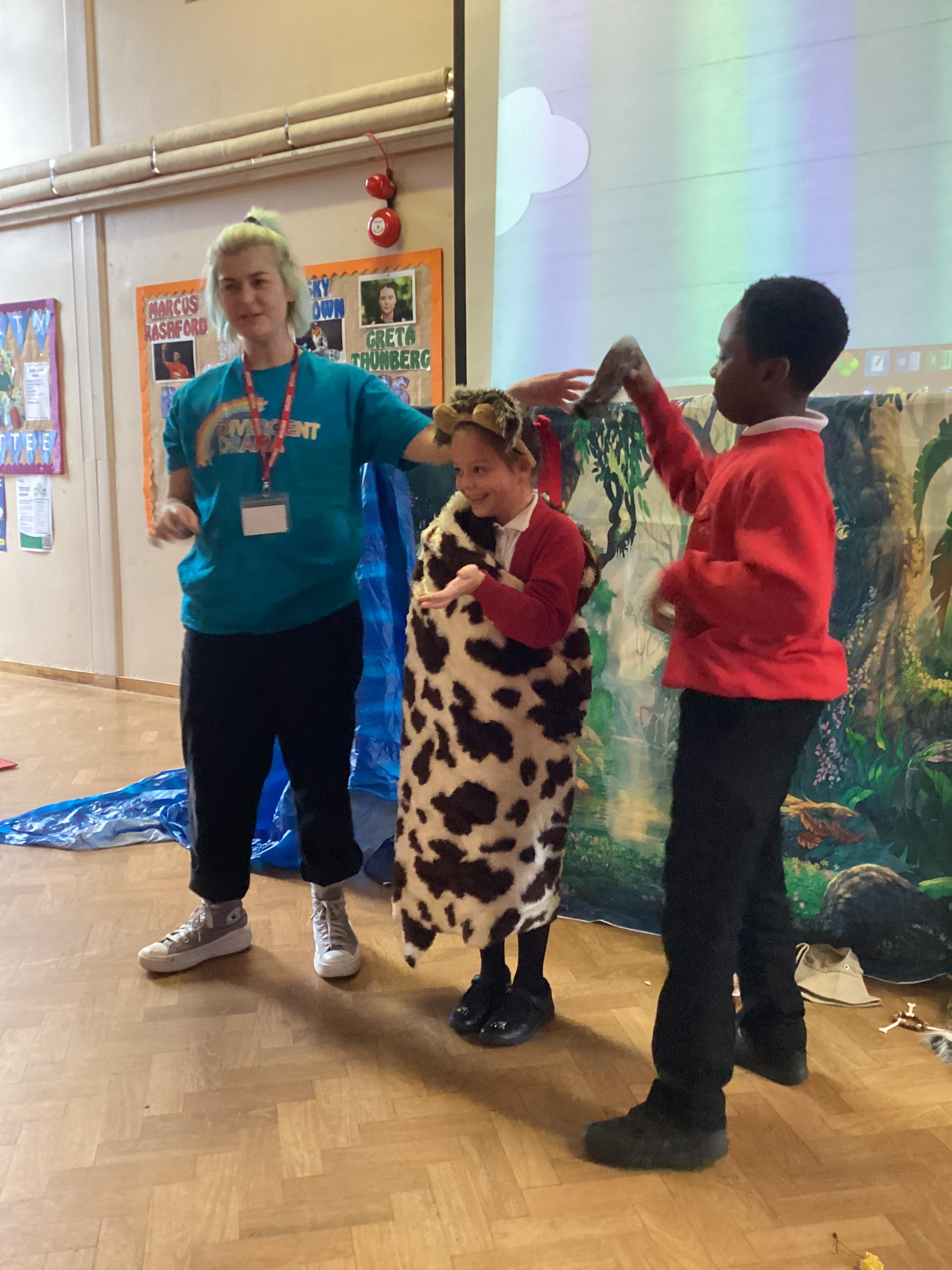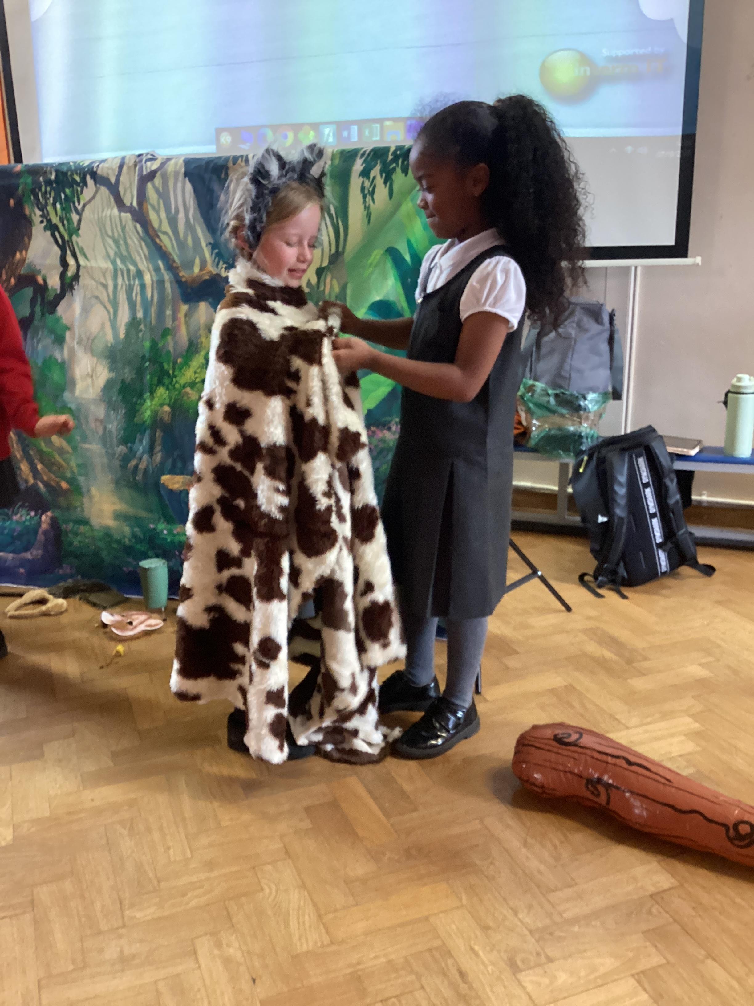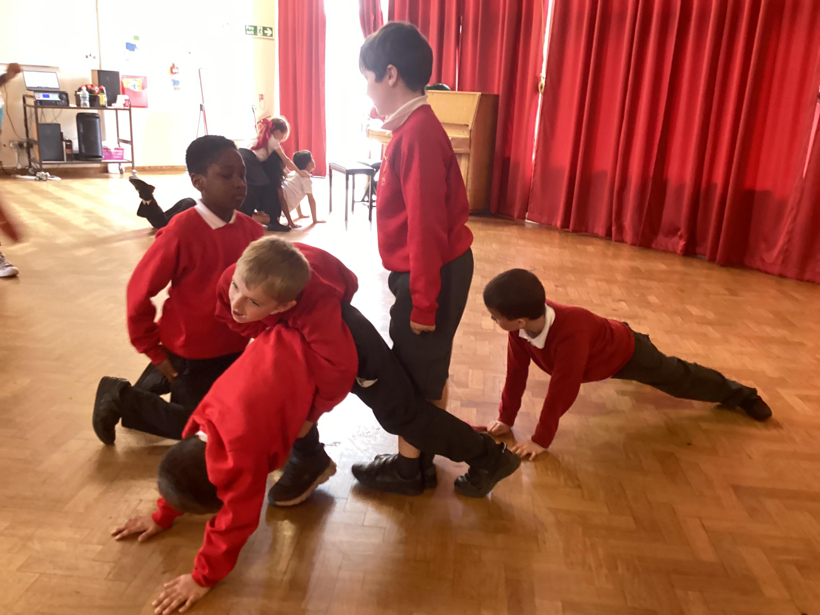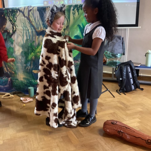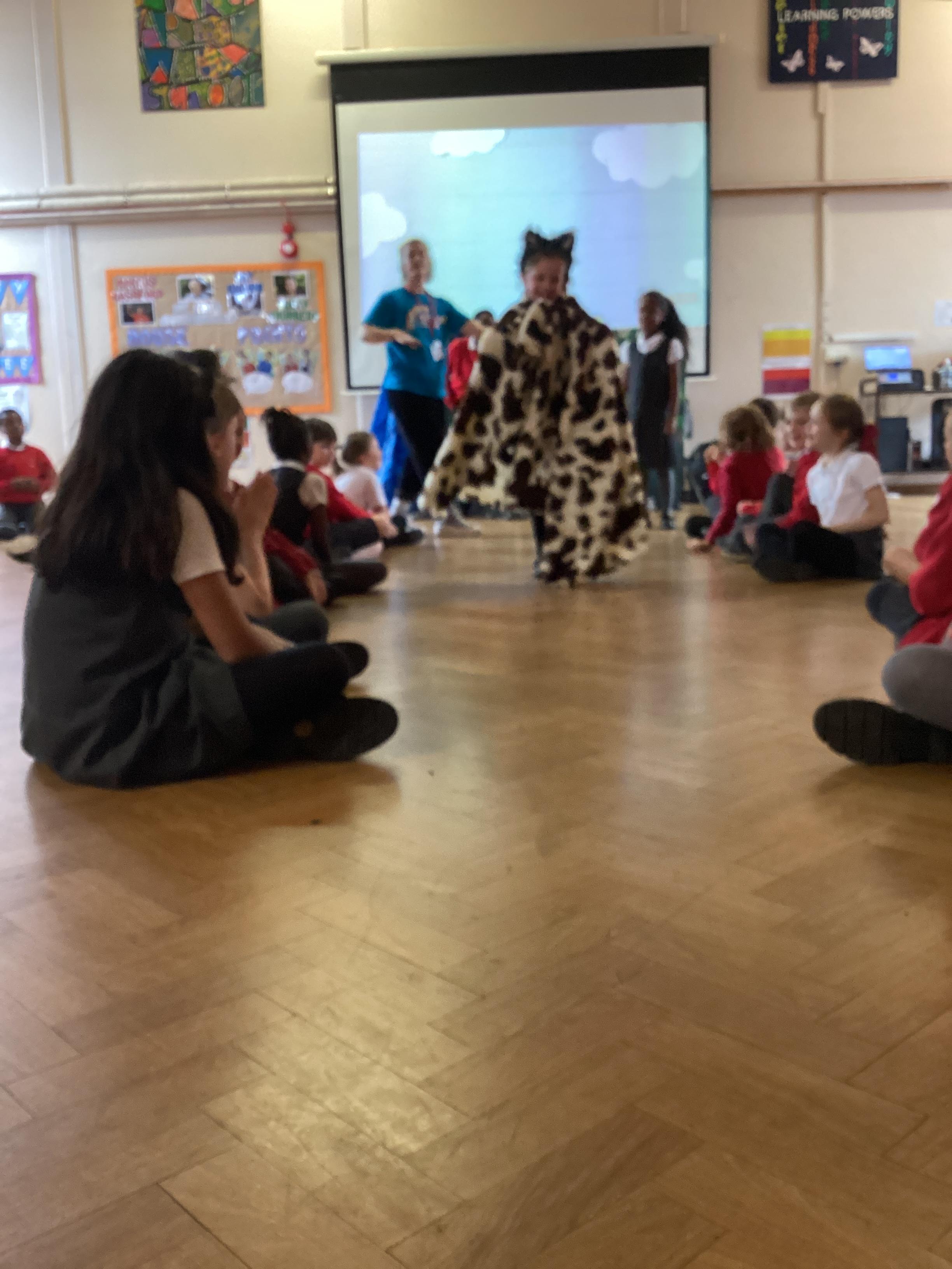 In PE we have been looking at expressive dance and how moving to the music is vital to any performance. We created routines, pretending to be different animals building up a range of movements that linked together. We then thought about how humans would react when faced with these animalistic interpretations and created a dance sequence to represent this meeting. We all had great fun and it was wonderful to see the children getting involved and expressing themselves.