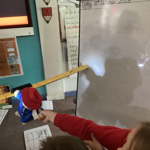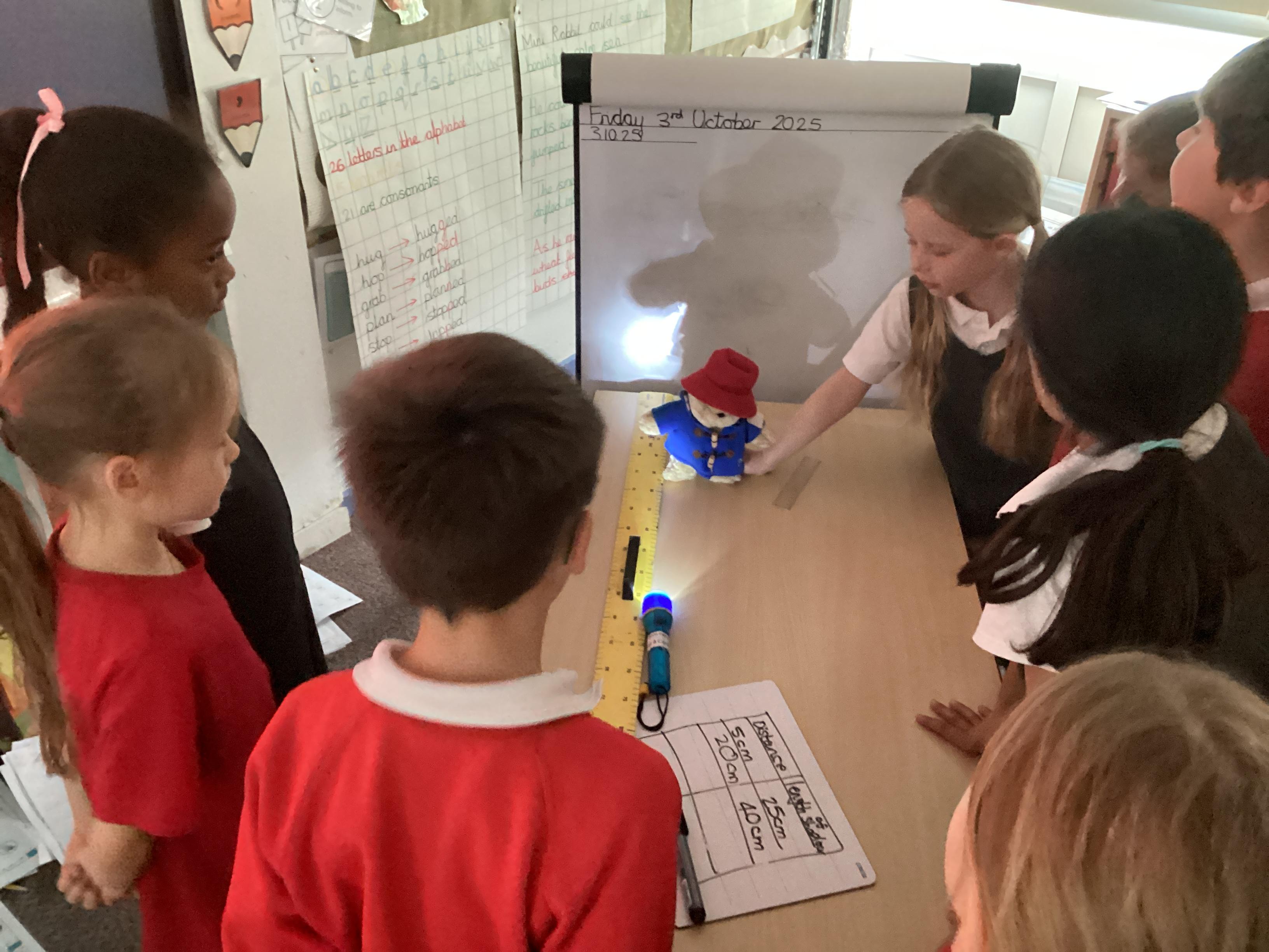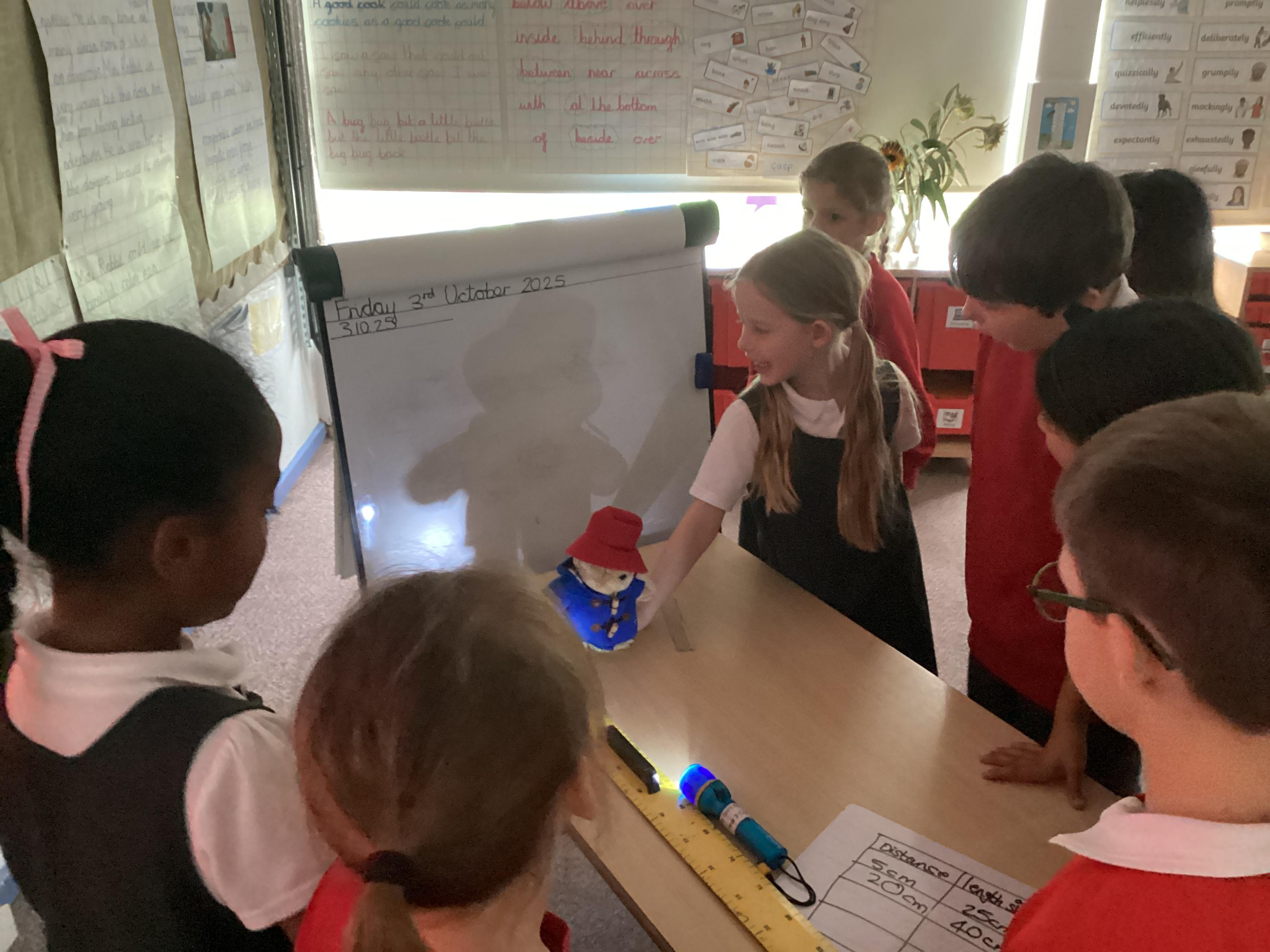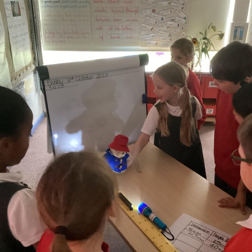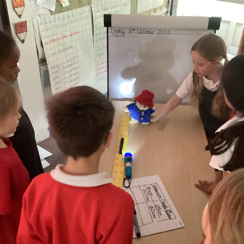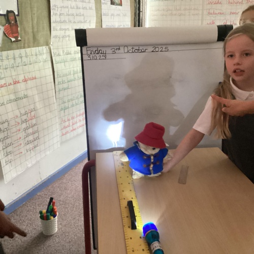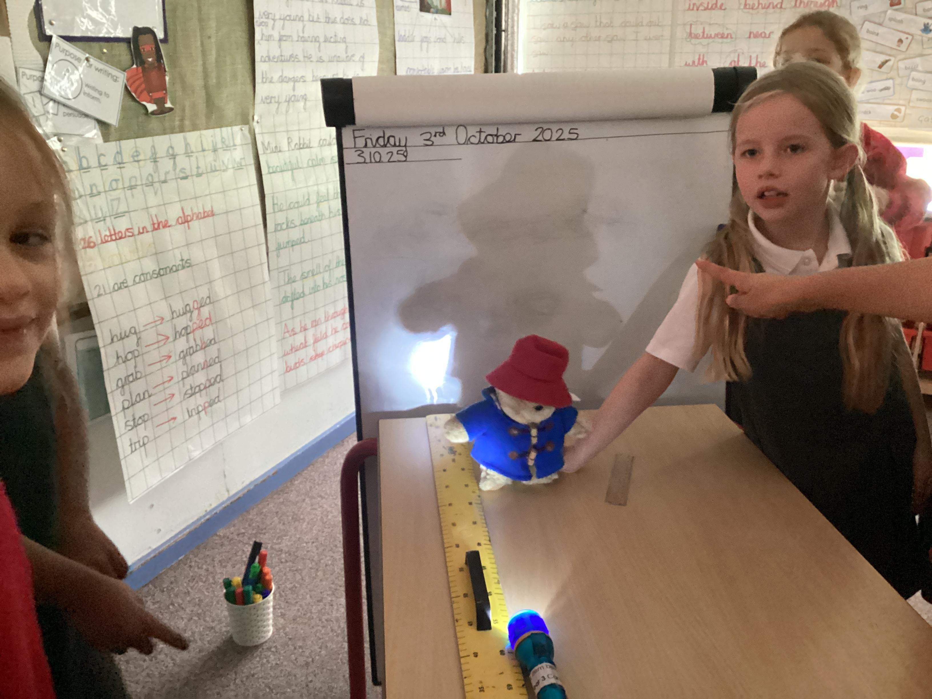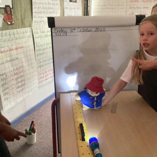 Our science topic has been, ‘Light.’ Children have been carrying out investigations to understand how shadows are formed and the way patterns change. They recognised we need light to see things and that dark is the absence of light. They have been understanding the importance of a fair test and collecting data to analyse the results.