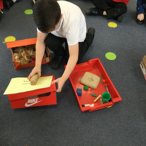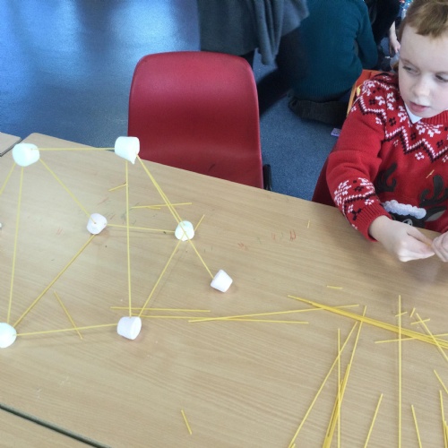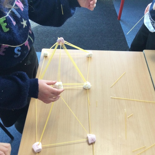 In science, we have been learning about materials. We have considered the properties of different materials and explored the reason why some materials are used to make certain objects. We have also investigated which materials would be most suitable for the three little pigs’ houses, testing lego bricks, spaghetti and marshmallows and cardboard.