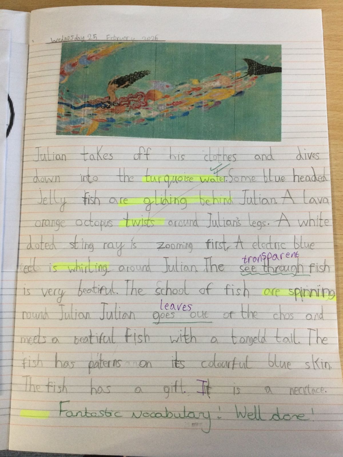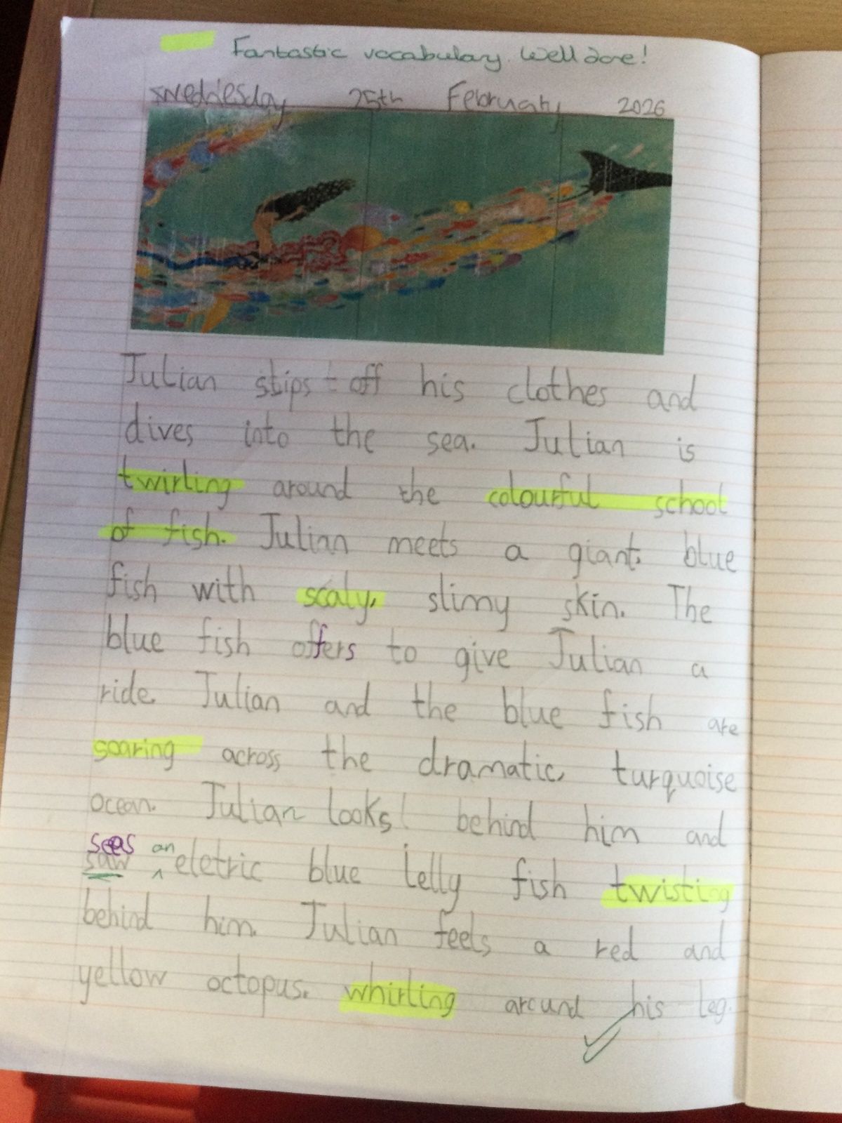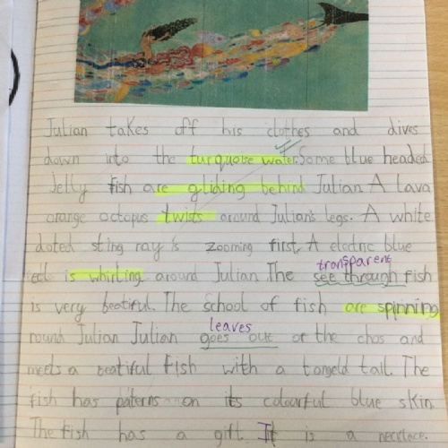 In English, we read the wonderful book, ‘Julian is a Mermaid’ by Jessica Love. In this narrative unit, we focused on using the present tense and developing our descriptive writing skills, writing some amazing descriptions of all the sea creatures Julian saw in his imagination. We also wrote our own story based on the book but using our own character and setting. We published these in our best handwriting! We have also been learning and reciting simile poems from ‘The Puffin Book of Fantastic First Poems’ in preparation for writing our own.