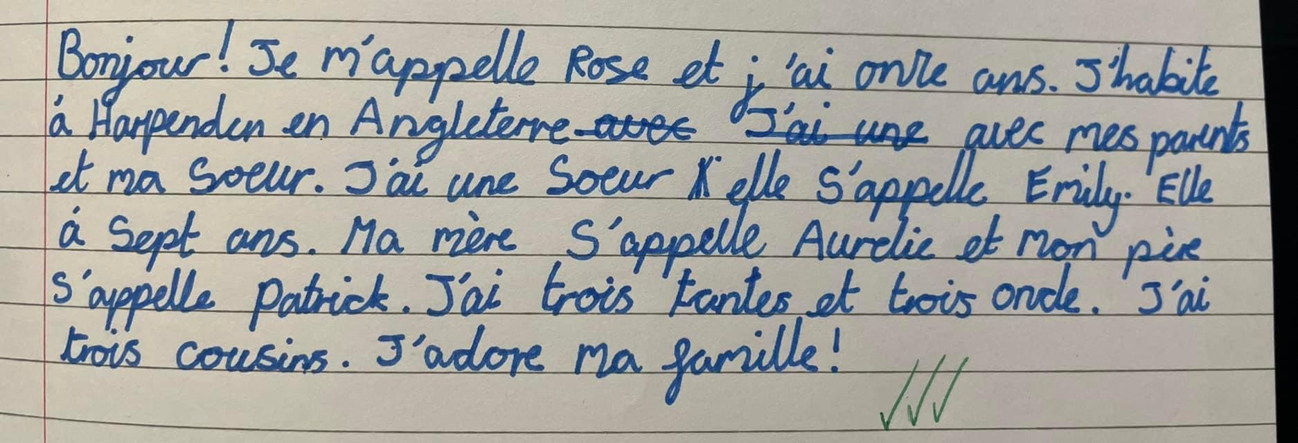 Grammar is integrated and taught discreetly throughout all appropriate units and children are exposed to all of the appropriate grammar, so they are able to create their own accurate and personalised responses to complex authentic foreign language questions by the end of KS2.