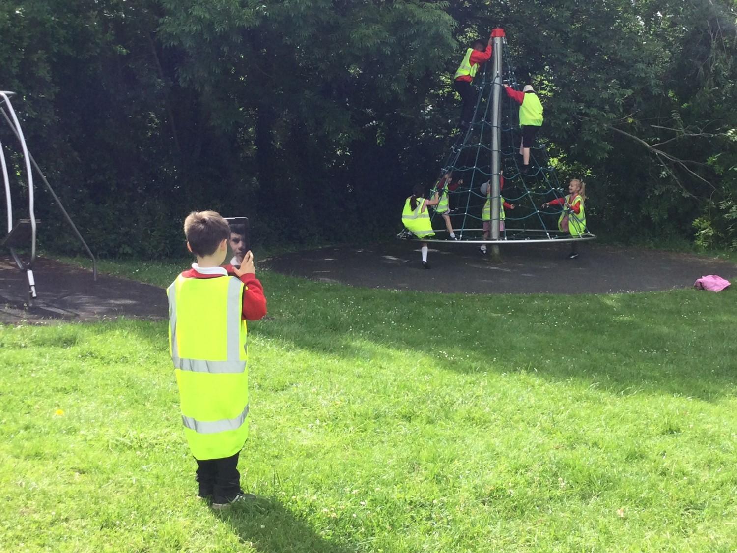 Having previously learned about our local area in the autumn term, Year 1 investigated playgrounds in their local area so that they could design their own. They went to Toulmin Drive playground to investigate the different play equipment there. They took photos using the ipads and made notes on which pieces of equipment they liked and also how they could improve the playground. Back in the classroom, they designed their own playground with a partner, thinking carefully about the different playground equipment they wanted and where they would place it.