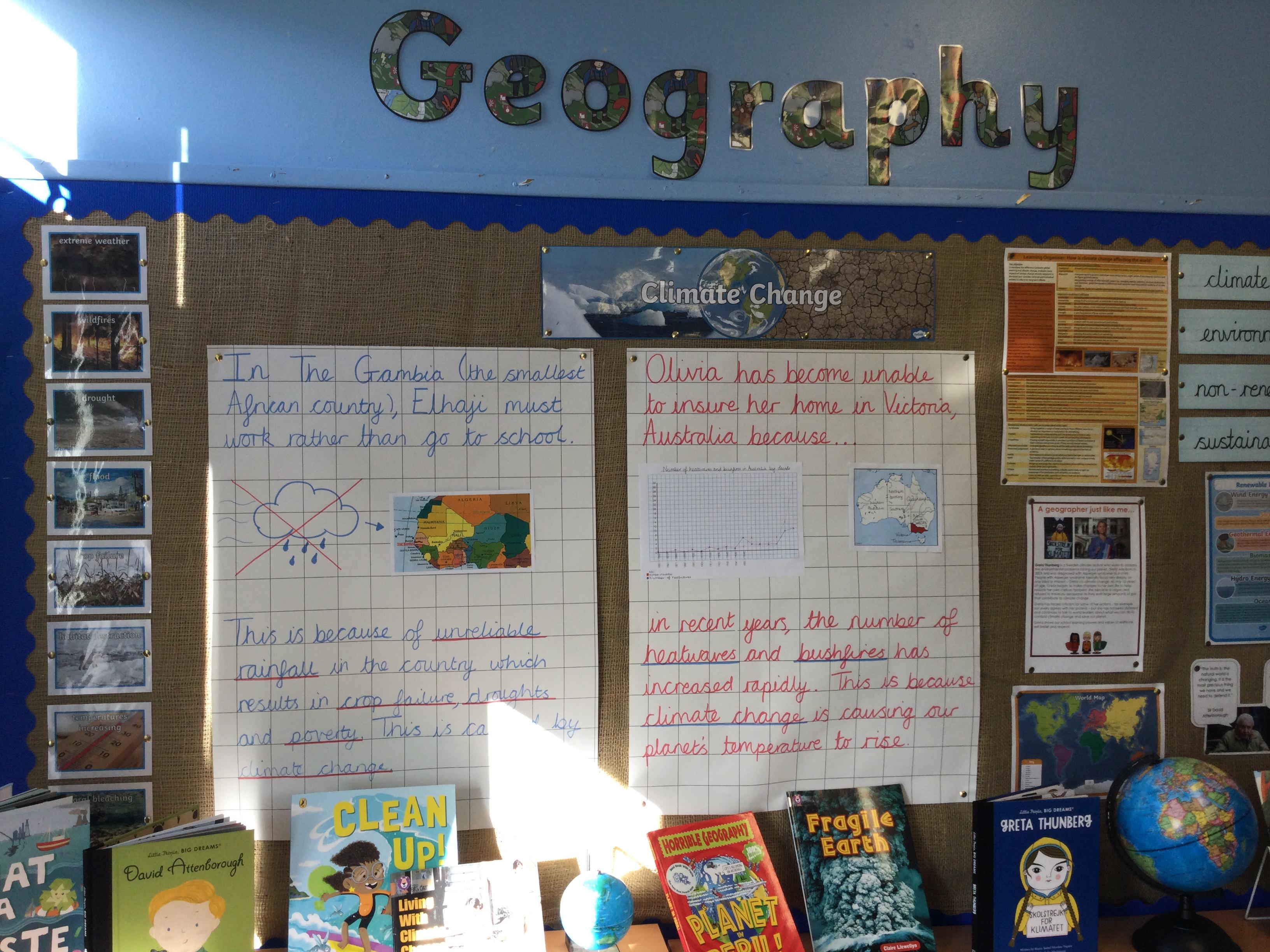 Our geography curriculum is logical, relevant and balanced in terms of subject content. For example, children study topical issues, such as climate change, flooding and trade. The curriculum becomes progressively more challenging in terms of subject knowledge and critical thinking. Children are able to build on previous knowledge and understanding as they tackle more complex enquiries. For example, in KS1 children observe the geographical features of the local area of the school and compare and contrast them with a school in Borneo. In KS2, this knowledge and understanding is extended when children investigate the nature of environmental change in their local area and consider the cost and benefits such change brings.