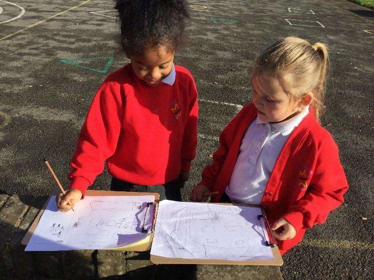 In order to learn about our local area, Year 2 carried out their fieldwork on playgrounds. They enjoyed a walk to Toulmin Drive playground to investigate the different play equipment there. They made notes on which pieces of equipment we liked and also what we would add or improve. Later they designed their own playground with a partner, creating a nearly to scale diagram complete with labels and keys.