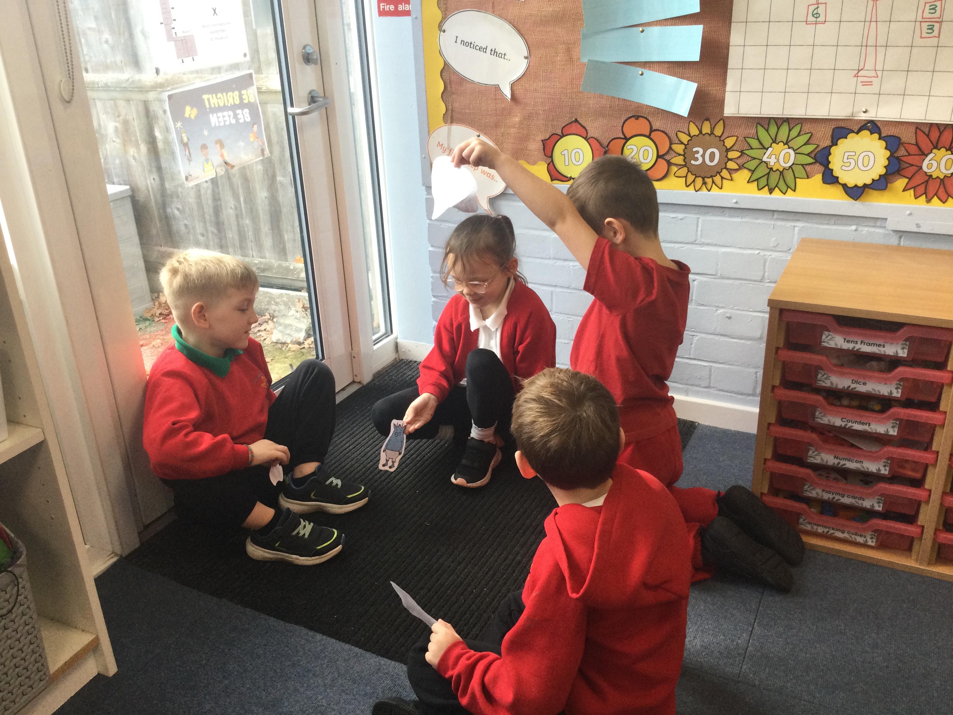In maths, we have been learning how to double and halve numbers up to 20 using numicon, cuisenaire rods and tens frames. We investigated odd and even numbers and linked this with halving and sharing. We also enjoyed exploring the properties of 2D and 3D shapes and discussing their similarities and differences.
