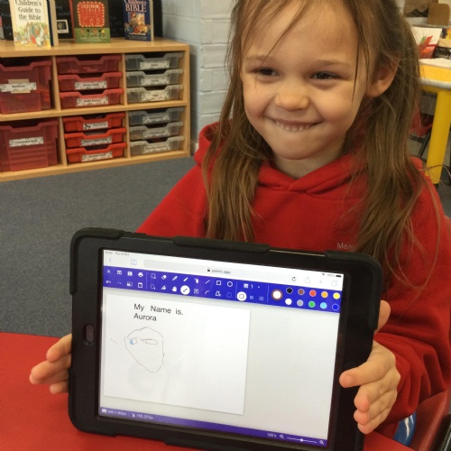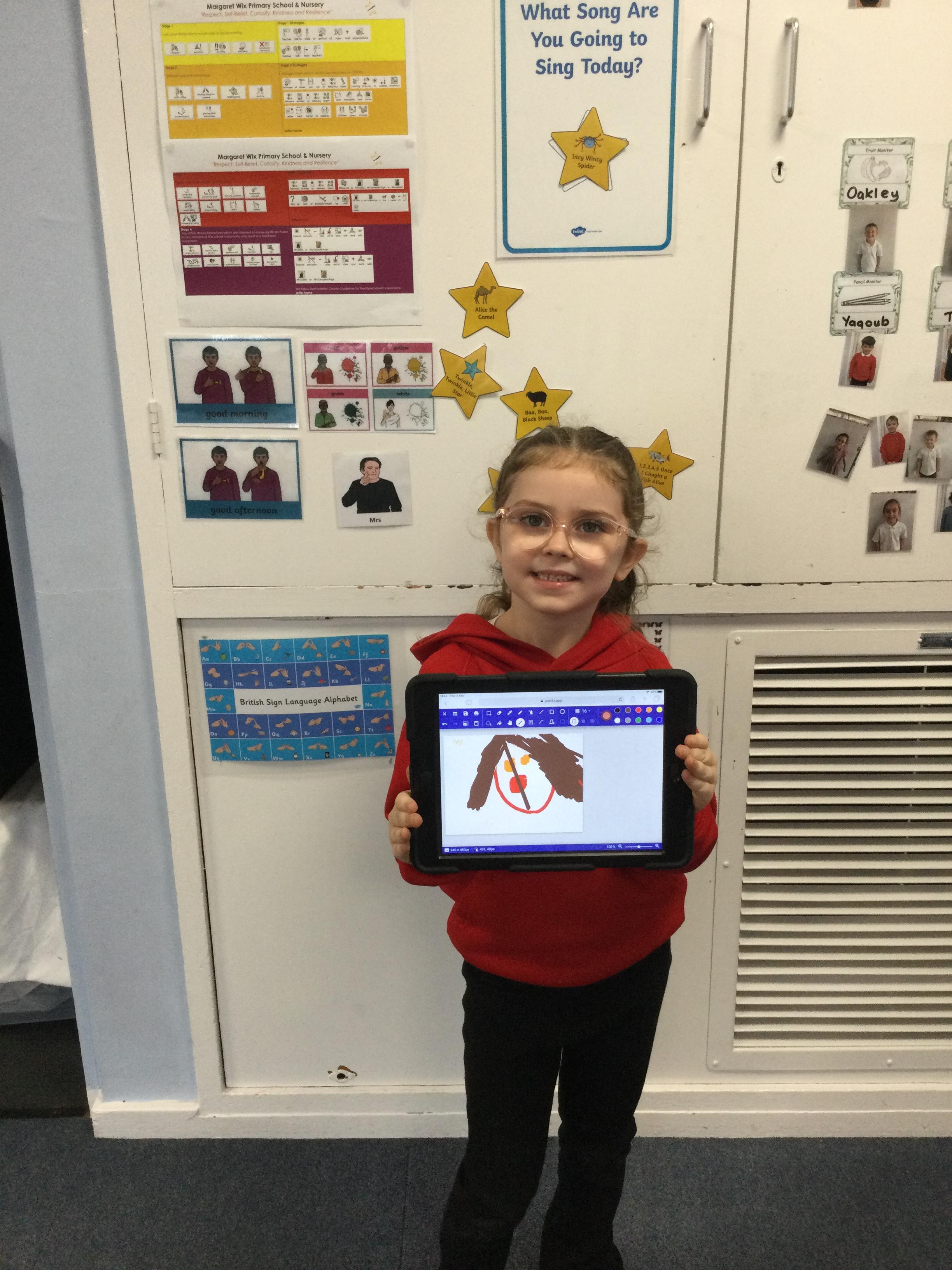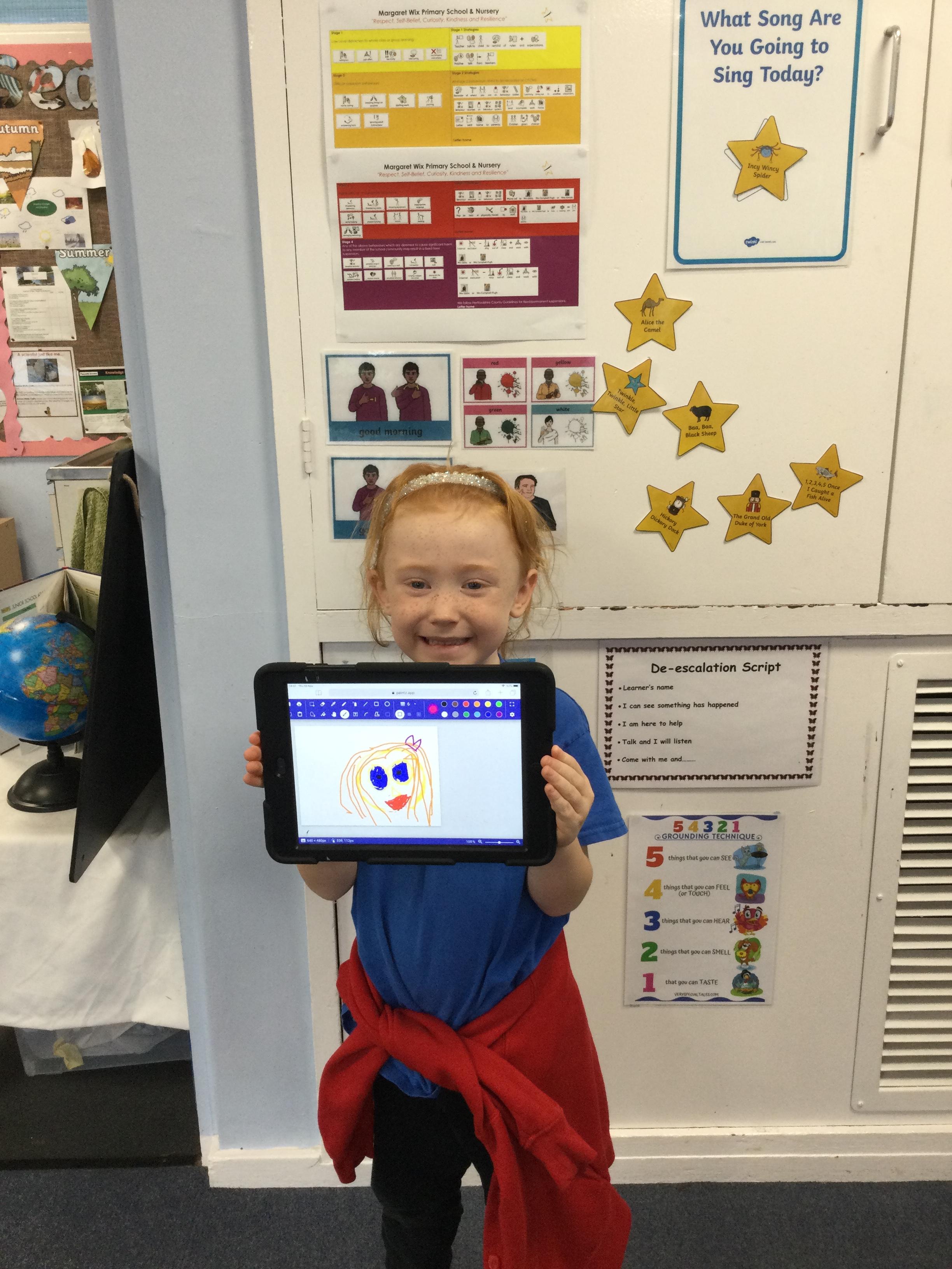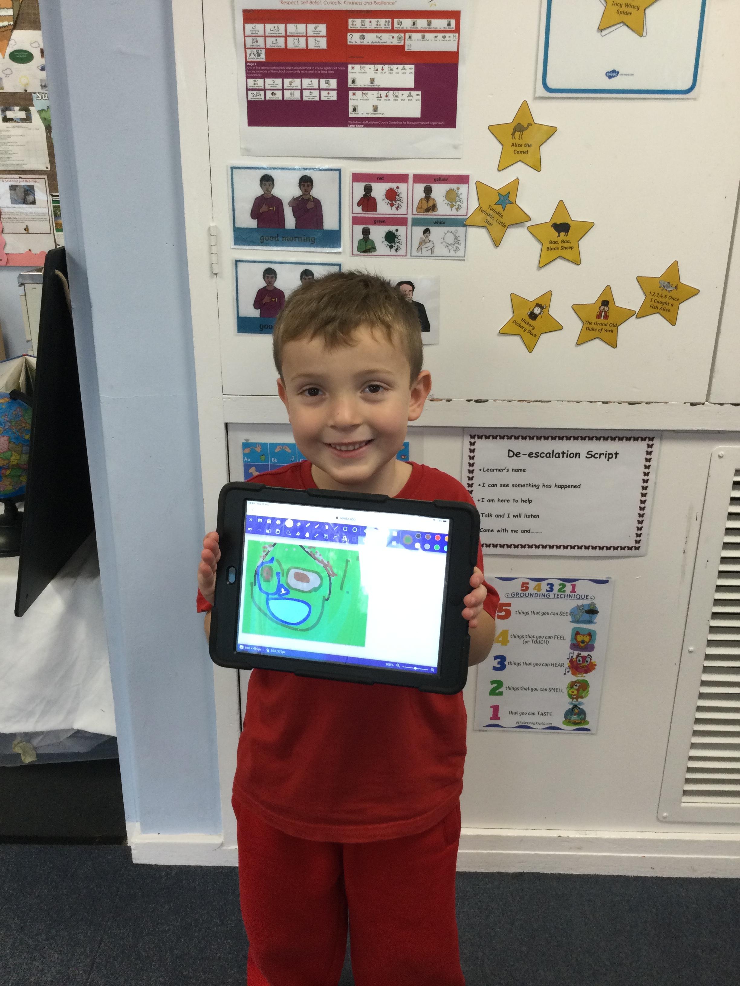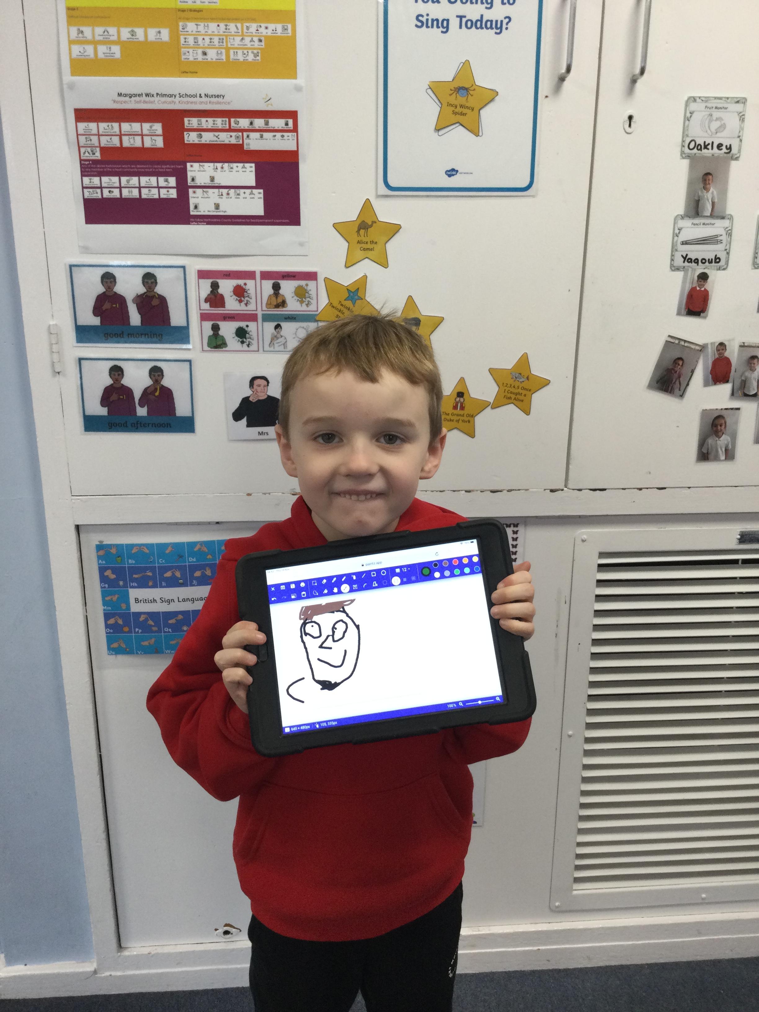 They used their mouse skills to ‘drag and drop’ in a fun puzzle task and they developed their skills further using the Paintz.app programme to draw a picture of themselves. The children then practised using their typing skills to create a text box and write their name. The children are doing really well at developing their mouse skills, but lots of them found it quite tricky! If you have a computer at home, please encourage them to practice using the free web-based www.paintz.app programme.