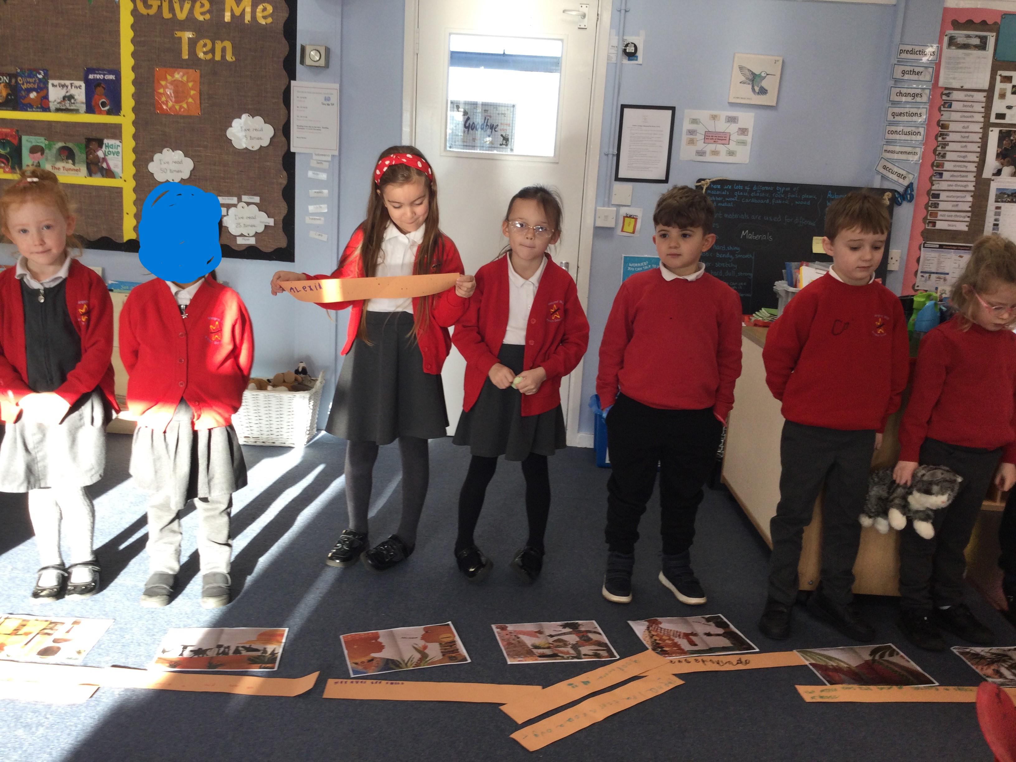 In maths, we have been counting up to 20 and back and working on our number formation. We have been using objects from around the classroom to practise our counting and subitising skills and matching a given number of objects with a numeral card. We have been ordering numbers and finding out one more and one less. We have been learning about basic addition and subtraction using concrete objects and a number line and considering how this might be written using mathematical symbols.