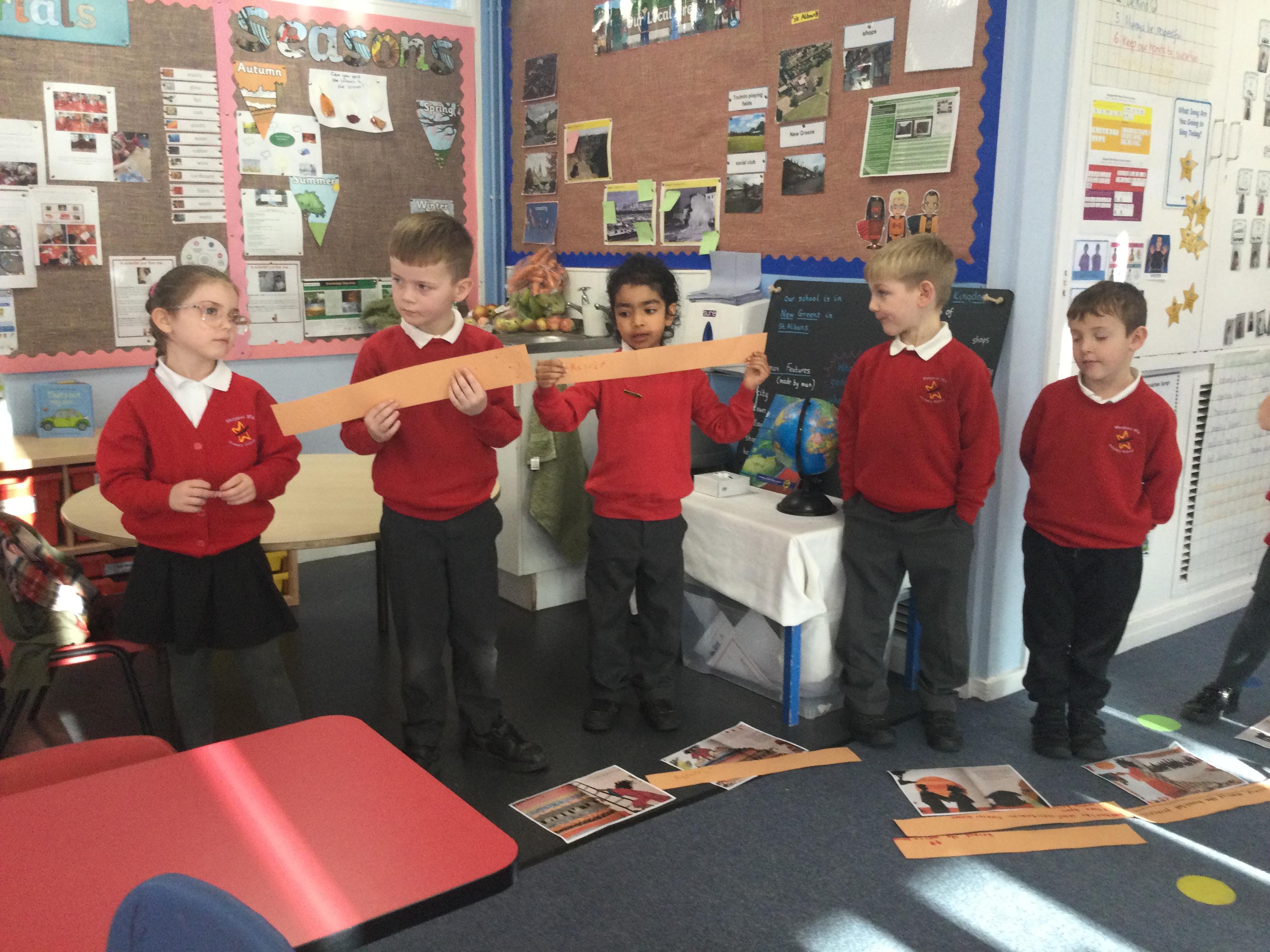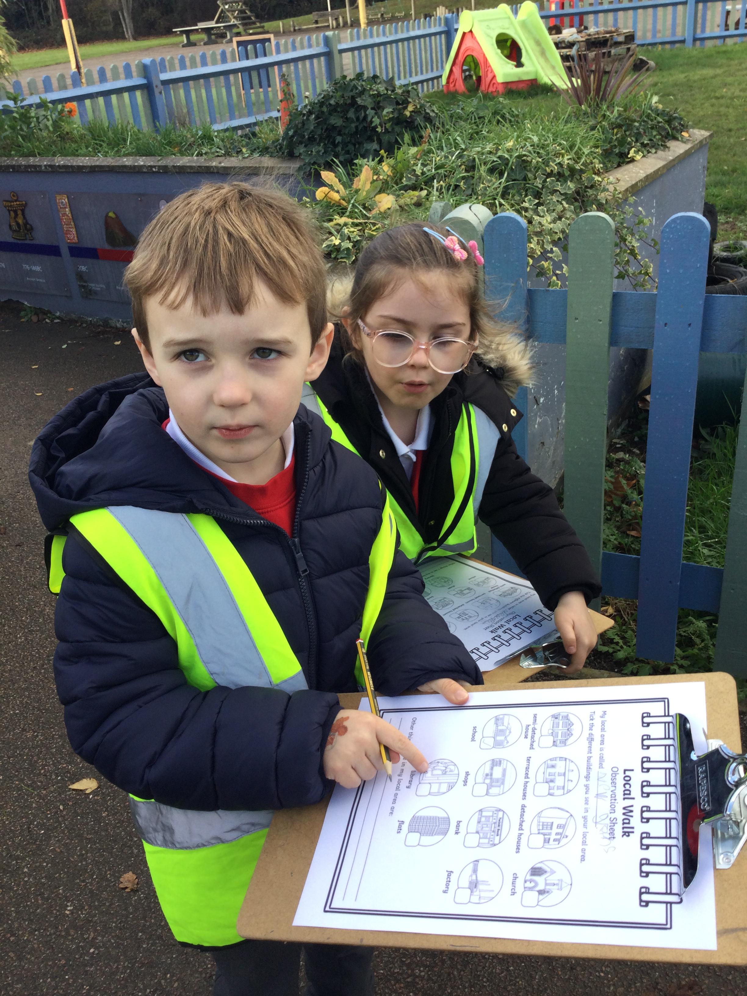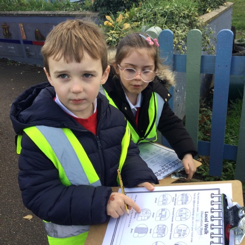 In geography, we have been finding out about our local area. We explored a map of the United Kingdom, naming the different countries and the location of St Albans. We studied our school and the surrounding area on digimap and created our own simple map of the school grounds. We explored our local area on foot, noticing the street signs, road names, different types of housing, shops, church and the woods in New Greens and identifying which were human and physical features.