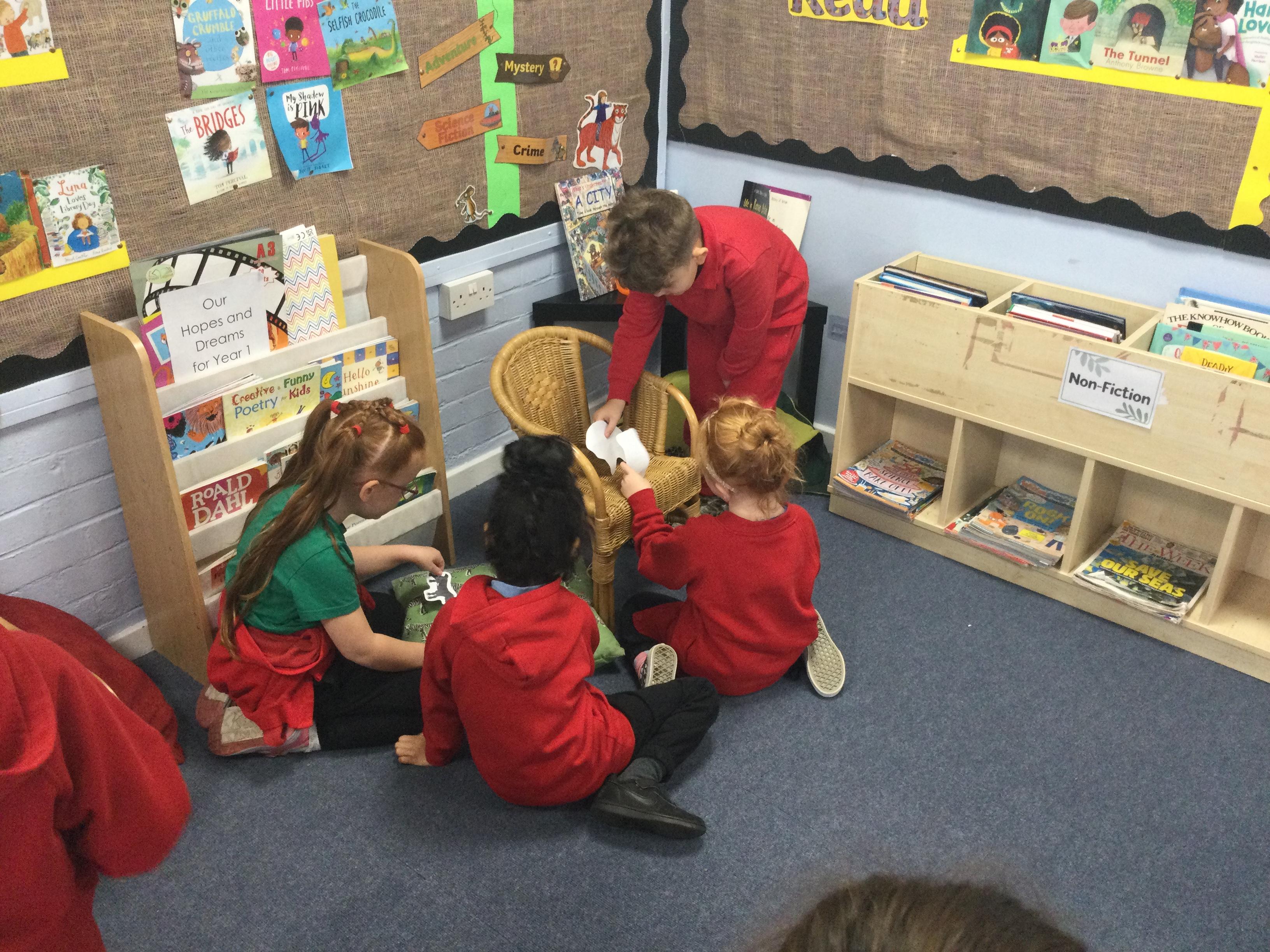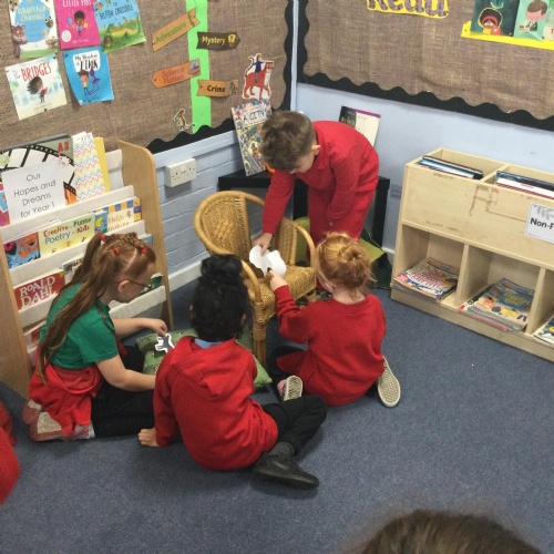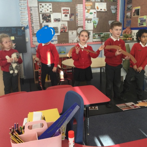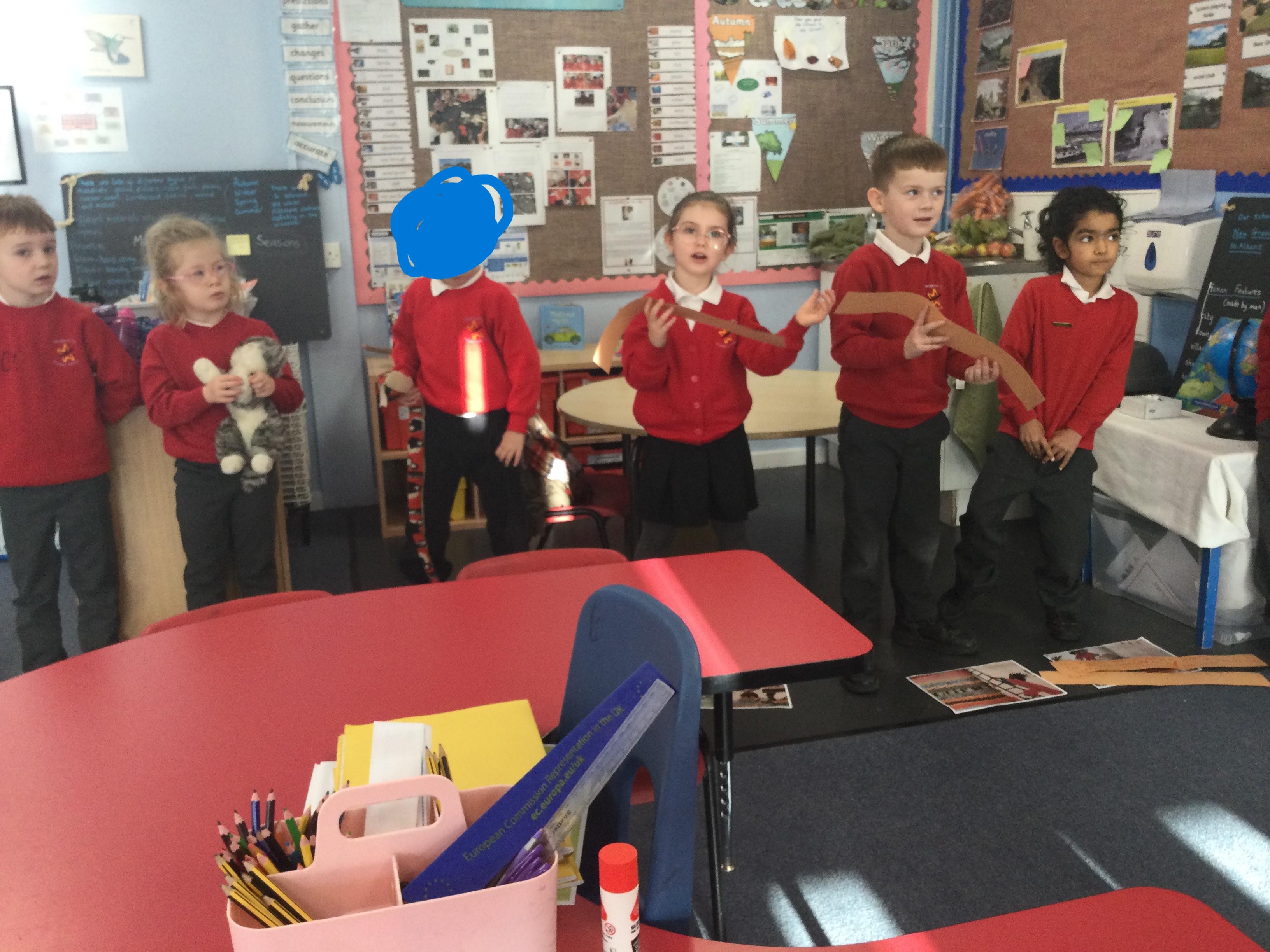 Next, we shared the delightful story of ‘Stanley’s Stick’ by John Hegley, about Stanley who uses his imagination to turn his stick into all sorts of fantastic things. The children enjoyed finding their own sticks, retelling the stories in their own books and finally writing their own versions of the story which are now proudly in our book corner in class.