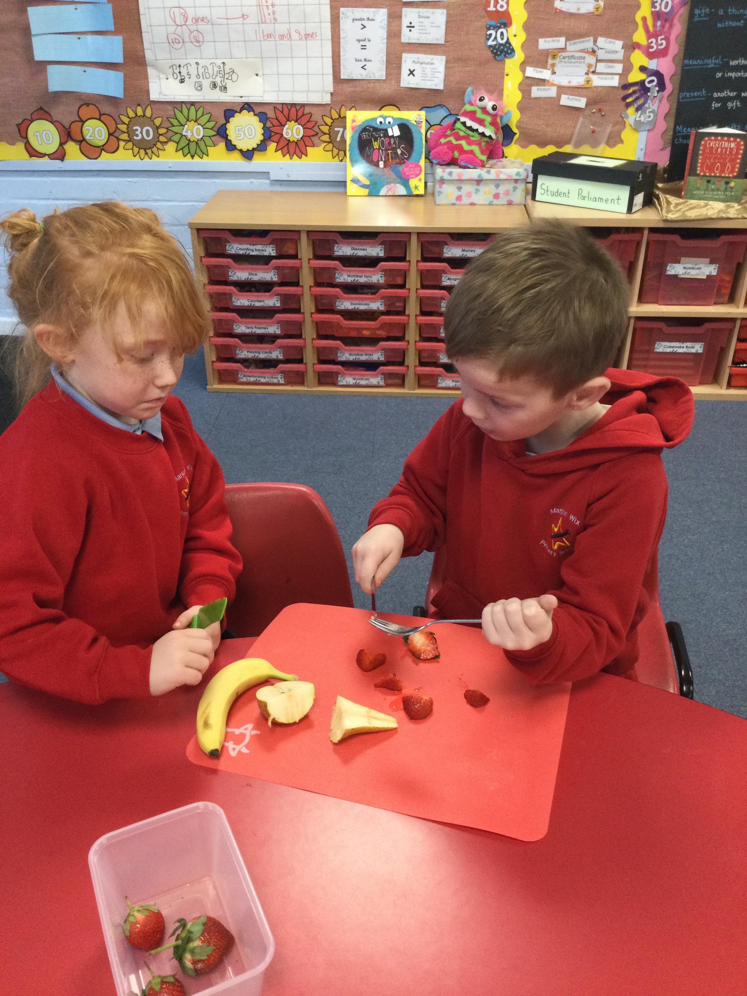 In DT, we have been considering where different foods come from, discussing a balanced diet and how fruits and vegetables are healthy. We designed and created our own healthy smoothies, tasted them and evaluated them. Yummy!!