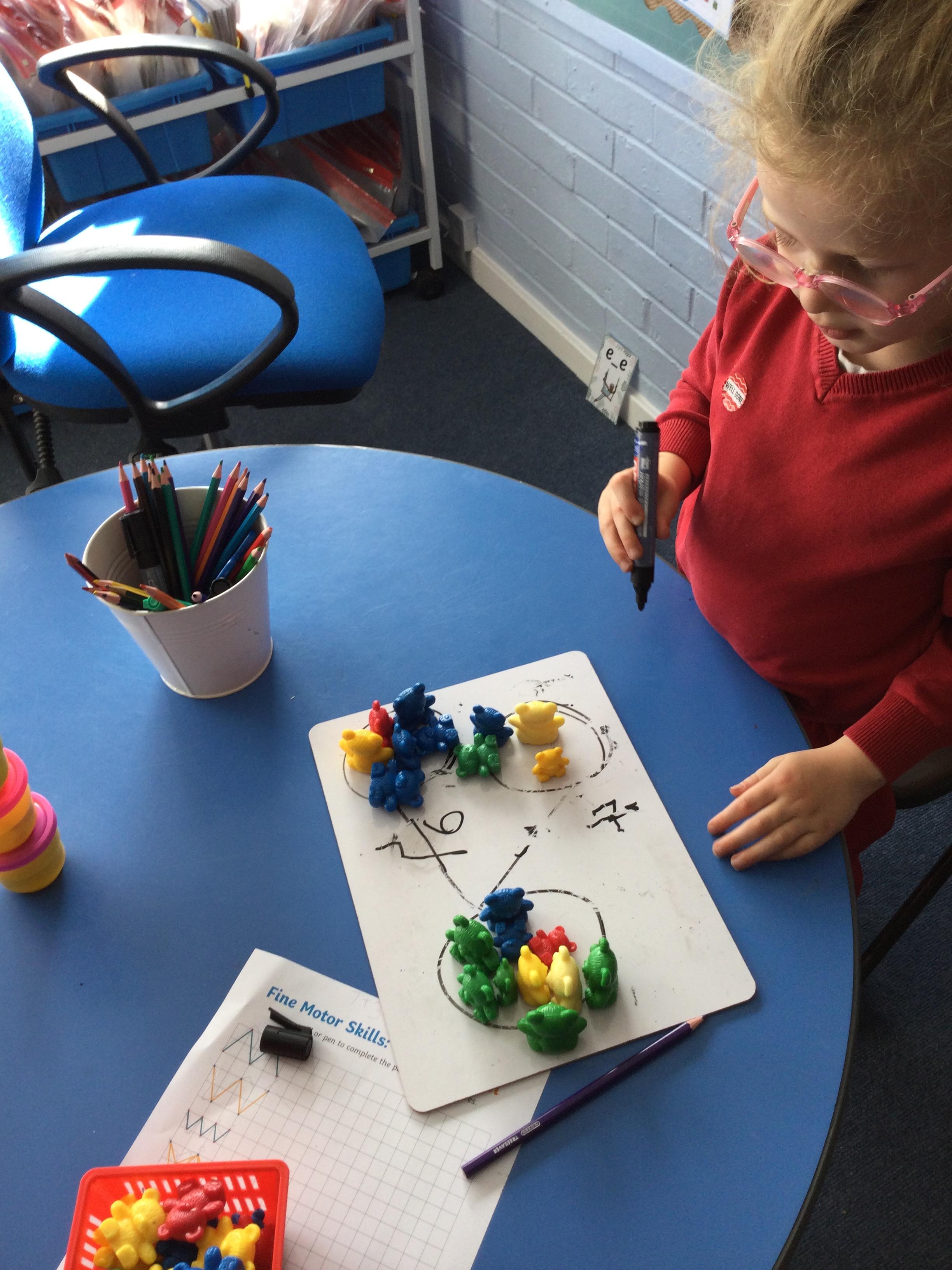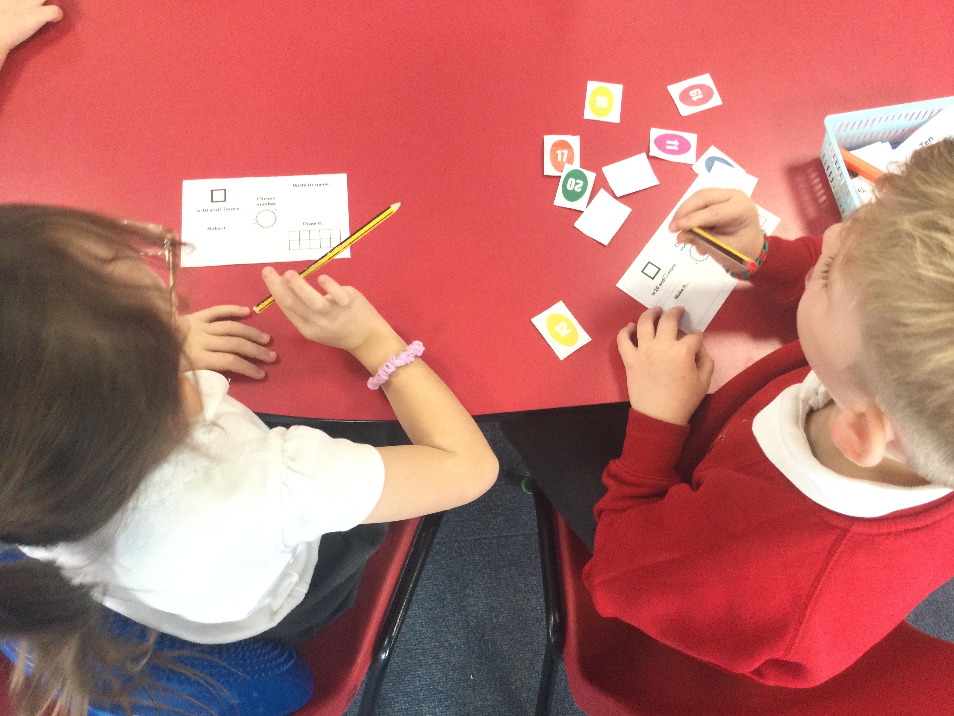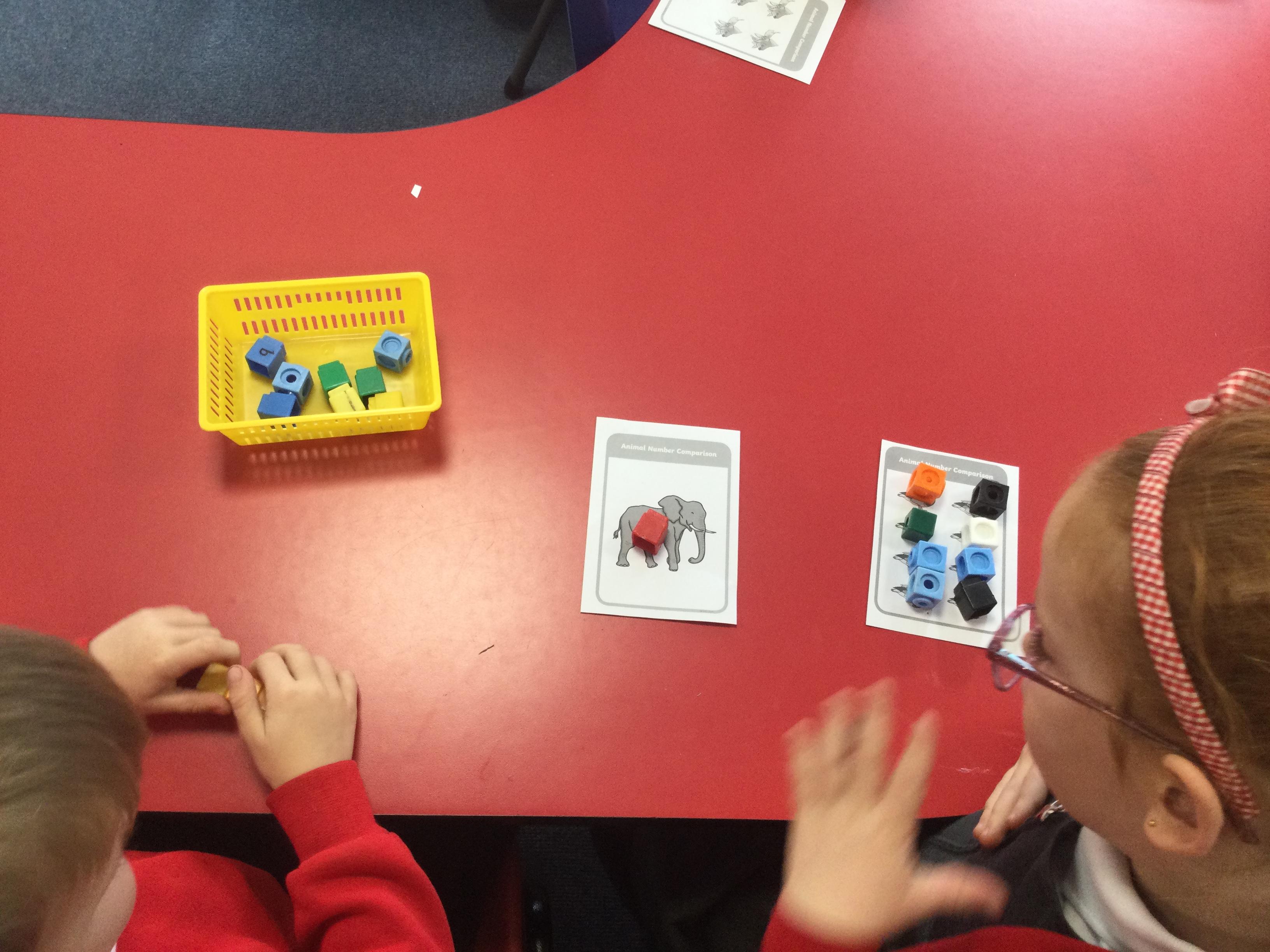 The children have worked hard to count carefully and compare two groups of objects to find the difference. We have had a number of lessons using the balance scales to show that the = symbol actually means ‘the same as’ or ‘balanced,’ rather than ‘the answer.’ The children have really impressed us with finding lots of different ways to find ‘the same as’ for a given number.