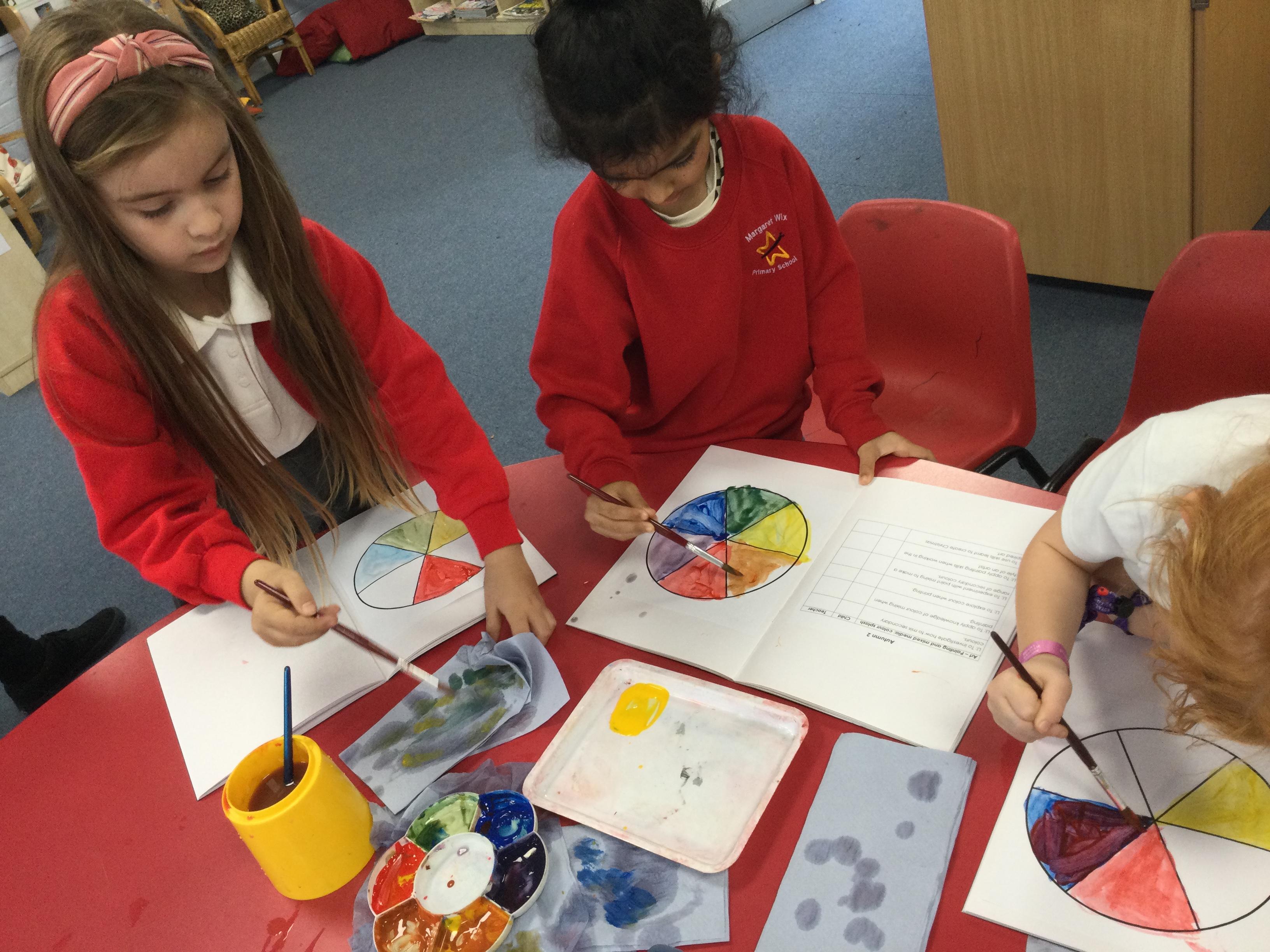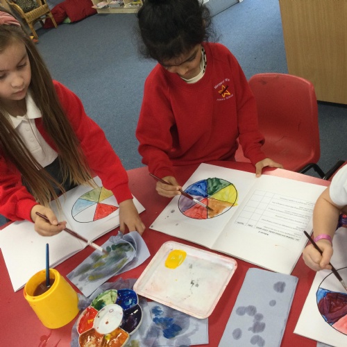 In art, we have been exploring primary and secondary colours and colour mixing. We have been using different tools to apply paint, producing some very creative pieces of art, including our paper plates in the same style of Clarice Cliff.