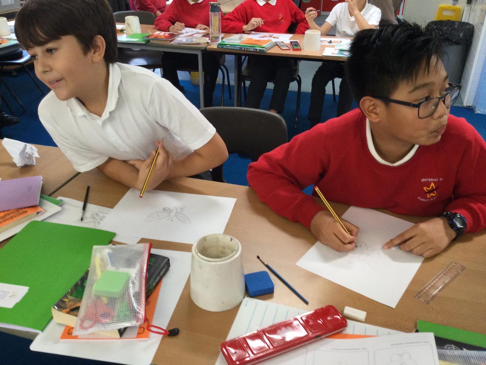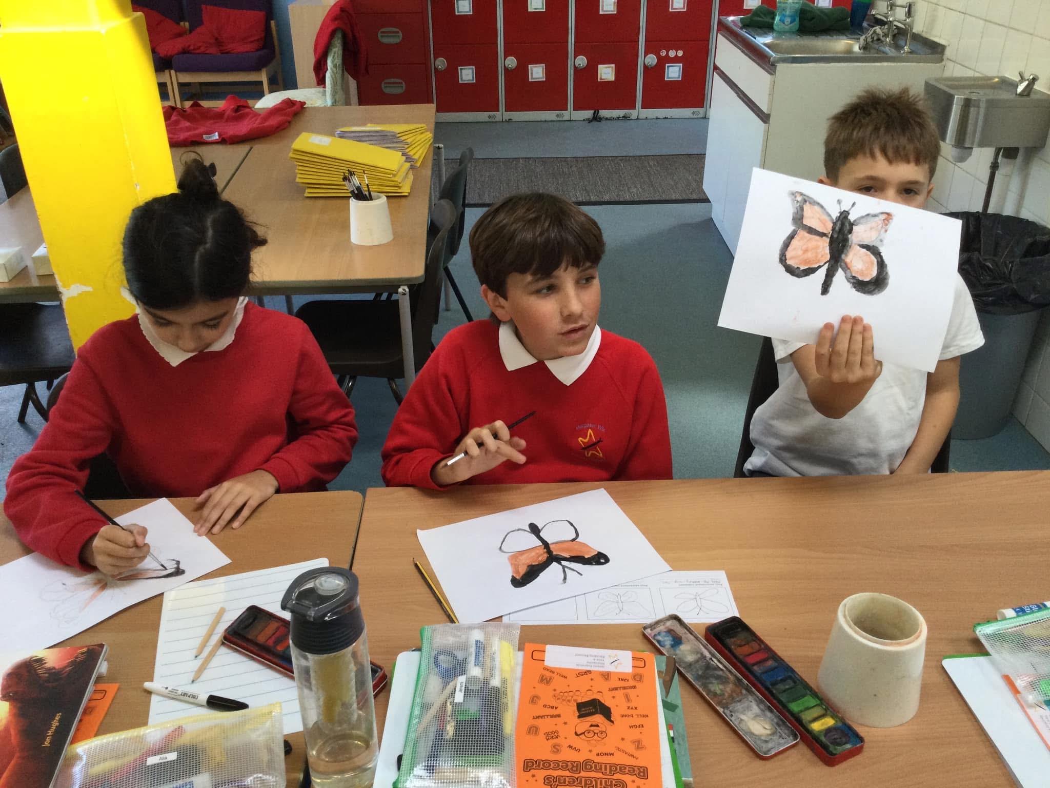 In art, Monarchs had undertaken a drawing unit of work involving looking at different styles of street art, understanding and applying chiaroscuro and created symbolic and expressive drawings. this topic encouraged the children to form their own opinions about art, understand the impact of techniques and convey messages through their artwork.