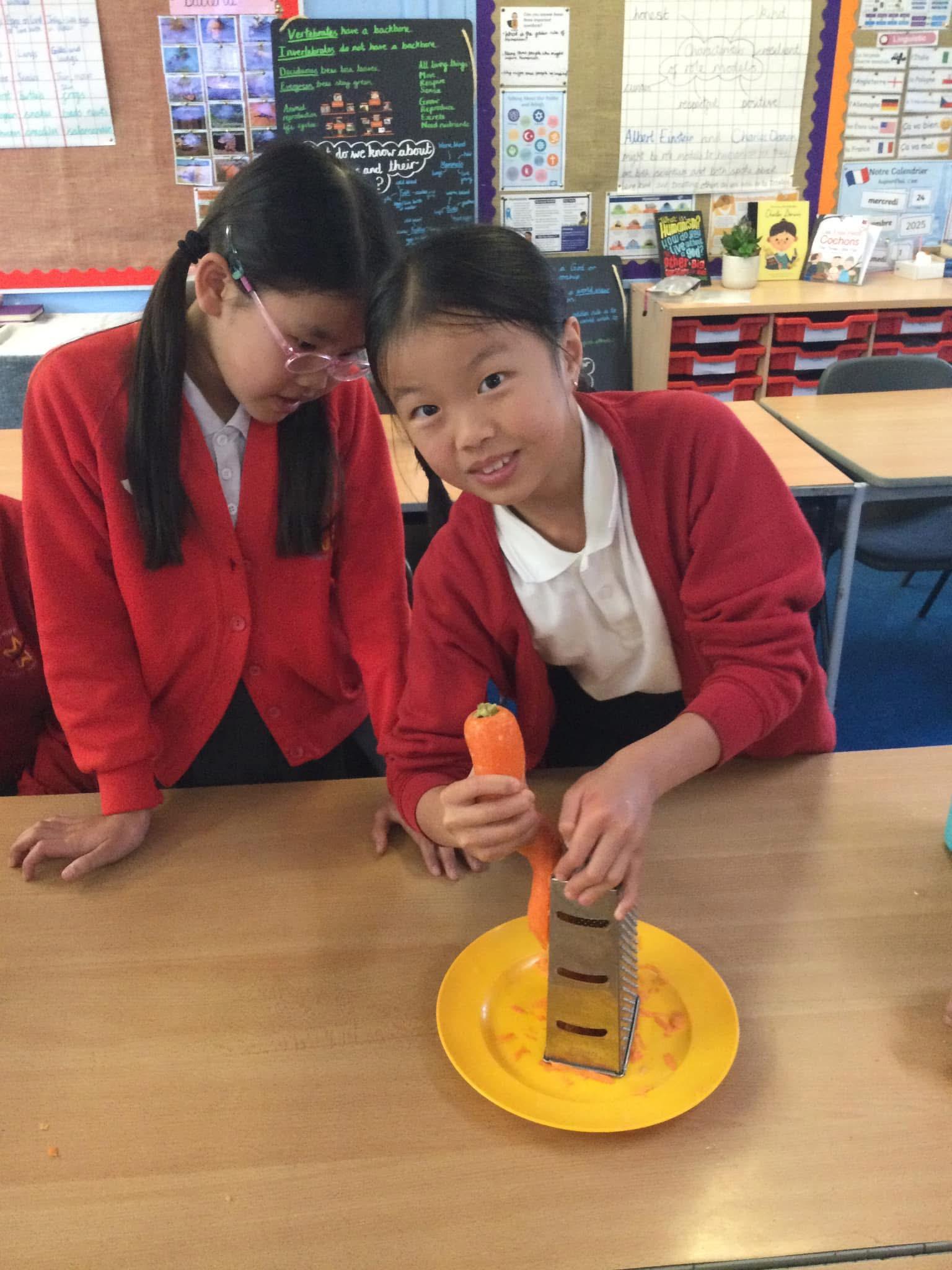 We finished the term with a DT unit based on cooking and nutrition. It involved researching, designing, making and evaluating stuffed peppers - delicious! The children were responsible for every aspect of the process including, dicing onions, crushing garlic, frying meat, adding seasonings, and grating cheese. The enthusiasm for learning during this process was exceptional, with children supporting each other to ensure careful work whilst having a lot of fun!