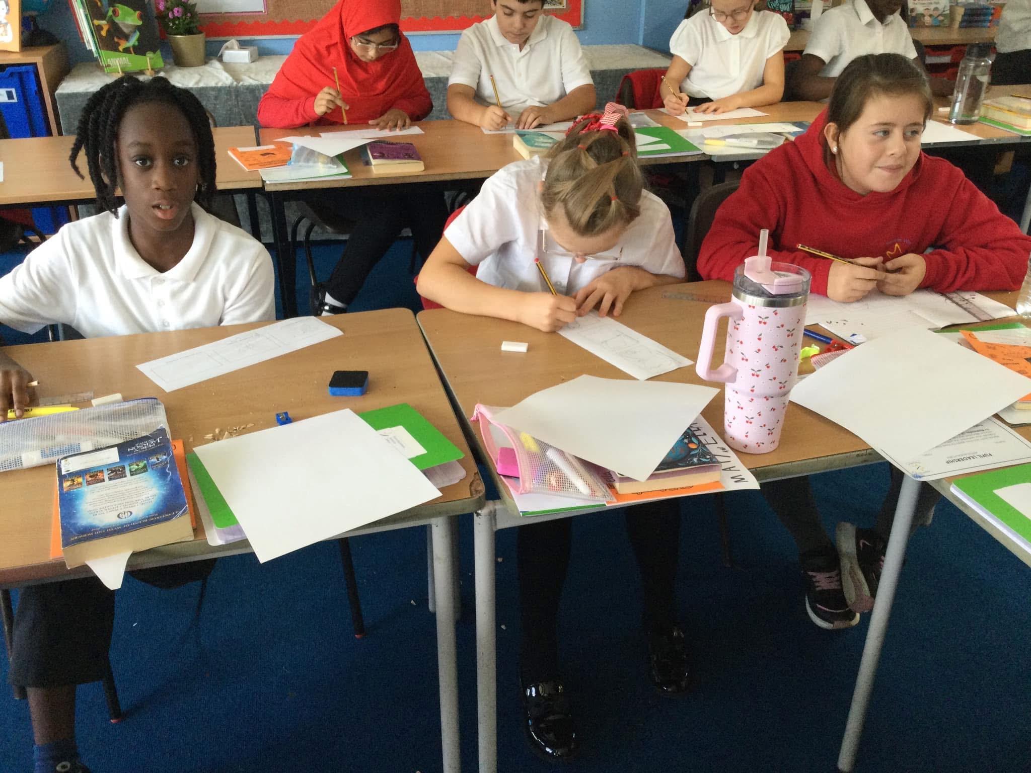 Our English lessons this half-term have mostly been based upon a fantastic text: Arthur Spiderwick's Field Guide to the Fantastical World Around You. This is an enthralling book, with brilliant language, about an amazing collection of magical and mystical creatures. Through reading it, we have been able to develop our understanding of a variety of grammatical techniques including: active and passive voice, subordinating clauses, hyphenated words, pronouns and adverbial phrases used for cohesion, and much more. We also used drama techniques to immerse ourselves in this fantastical world, such as creating freeze frames to show the chaos a mischievous boggart might create in our classroom. This work has then led to us creating our own non-chronological reports about weird and wonderful beasts that we are looking forward to seeing published in our very own class book.