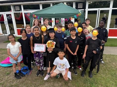 What a fun evening for our year sixes as they celebrated their time at Margaret Wix. Our leavers enjoyed spending time with their friends, racing around on a huge inflatable obstacle course, eating delicious BBQ food, guessing their classmates from their baby photos and playing a variety of games. We even had an ice cream van on the field!