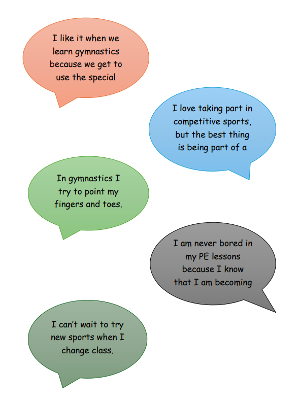 Assessments of achievements in PE are carried out in a variety of ways. Verbal feedback provides regular, relevant and timely information which is used to shape future teaching. Assessment is on-going throughout each unit and at the end of each topic children are assessed in their understanding of the key knowledge and skills covered. We understand that progression and achievement is not directly linked to natural sporting ability and encourage discussion as a way of shaping the curriculum to the needs and interests of our pupils.