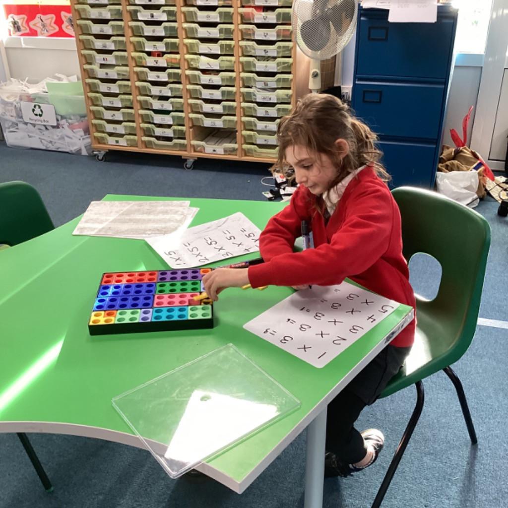 This half term has been all about times tables! The children in groups 1 and 2 have worked hard to learn times tables facts, building arrays, solving worded problems and learning about multiples and factors. In group 3 the children have been continuing looking at comparing numbers, using < and > and thinking about 1 more or 1 less. They have shown us how amazing they are at using their mathematical vocabulary when asnwering their questions.