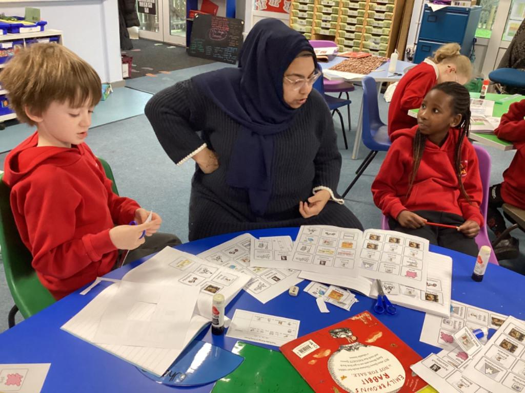 The teachers in the hub are Mrs. Lyle and Miss Benson. Supported by Miss Sikindari.