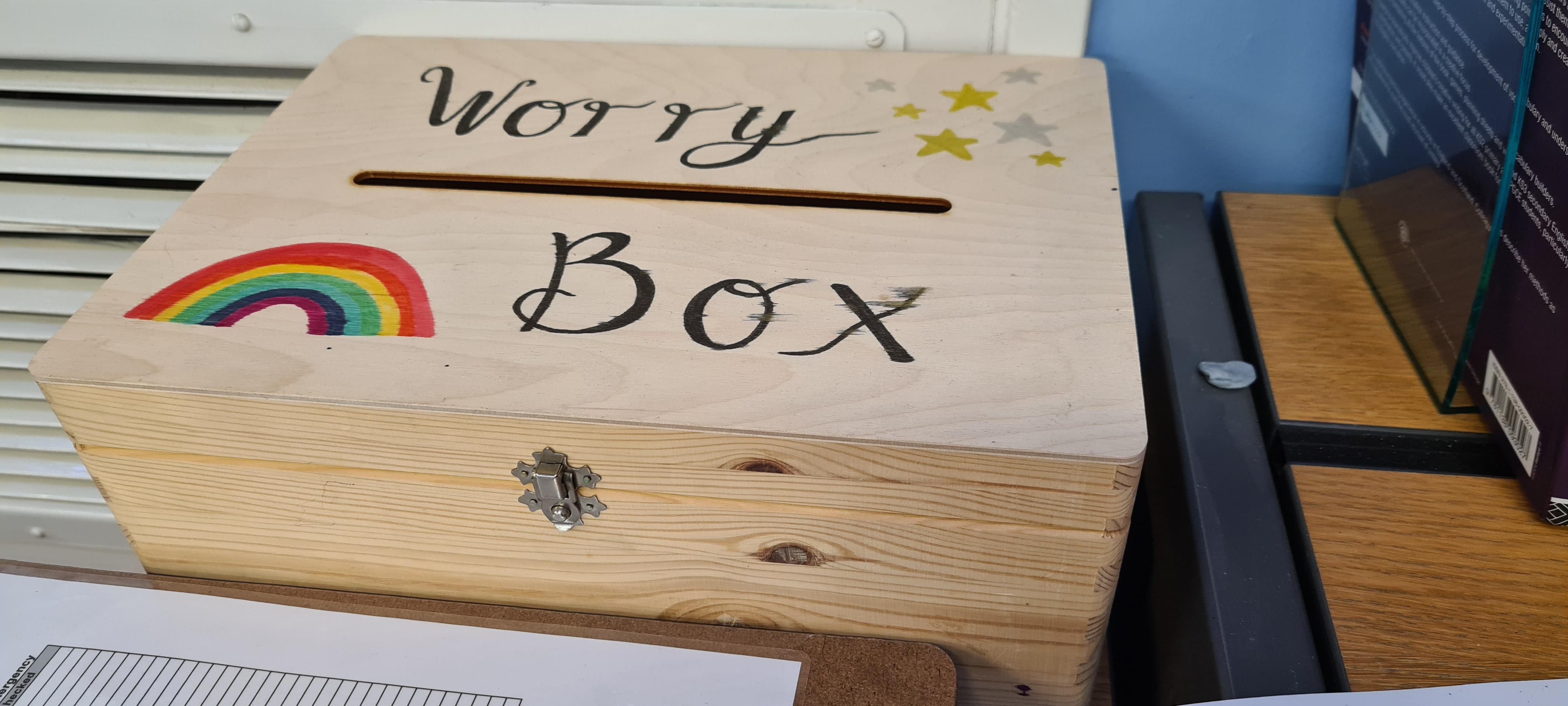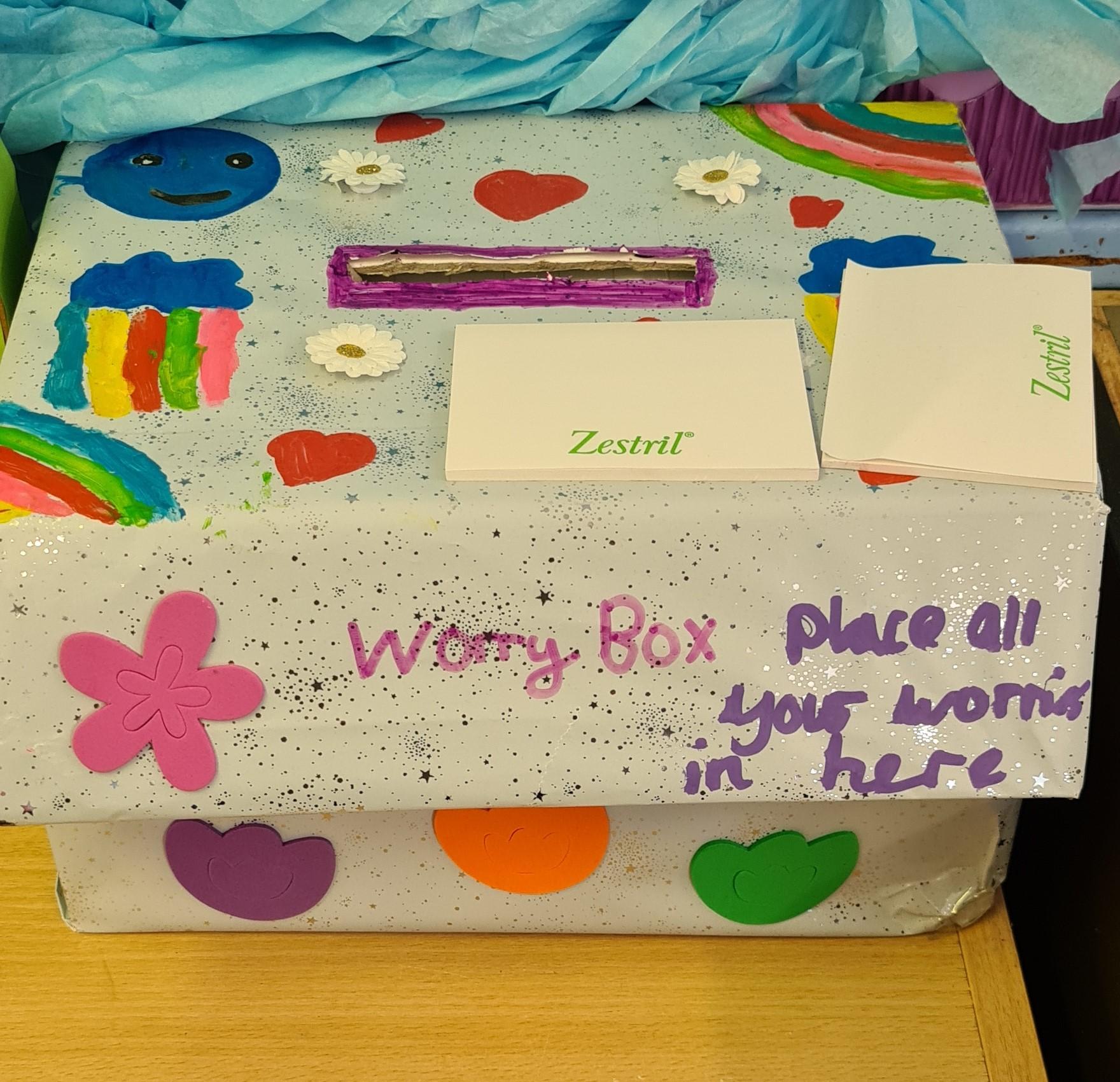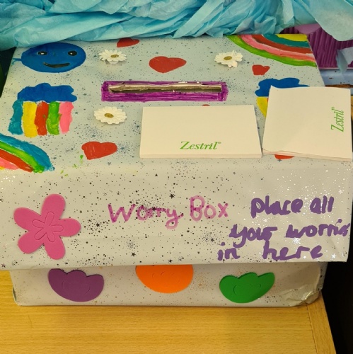To support children in managing their feelings, each class has a box to post their worry into. They can simply post their name into the box on a post-it note. The child will then be offered some time to talk away from other children.