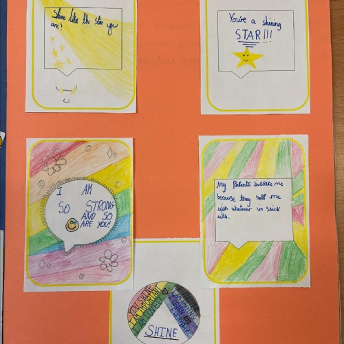 We are fortunate to have a counselling service through Safe Space and our counsellor sees children each Monday in school for as long as each individual requires. We also have a male mentor that works hard to build relationships with children that may need more assistance in building relationships and reaching their potential in class. Our Family Support Worker supports many of our families, helping them to navigate their way through challenging times in their home lives. In addition to all of these interventions, Miss Sikandari runs Sunshine Club each Tuesday lunchtime. This club is a place where children who see themselves as carers at home, can enjoy a peaceful lunch together and a creative activity of their choice.