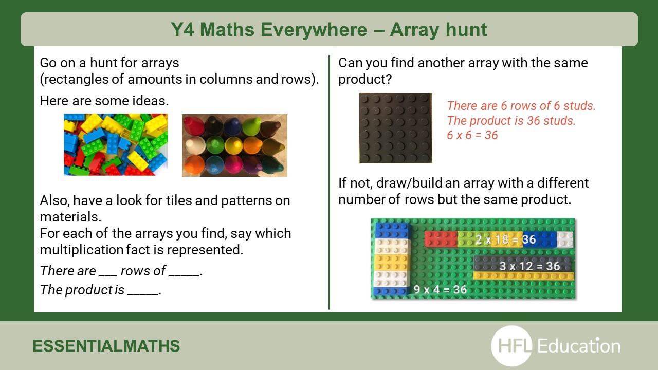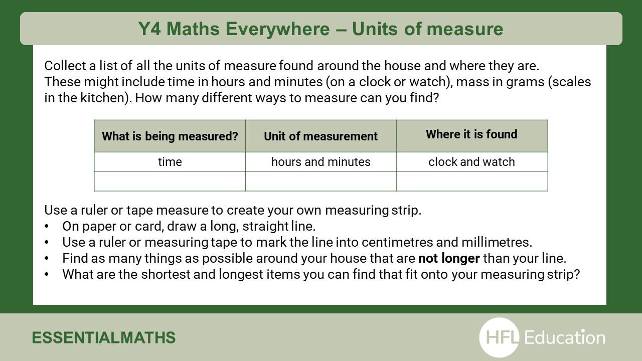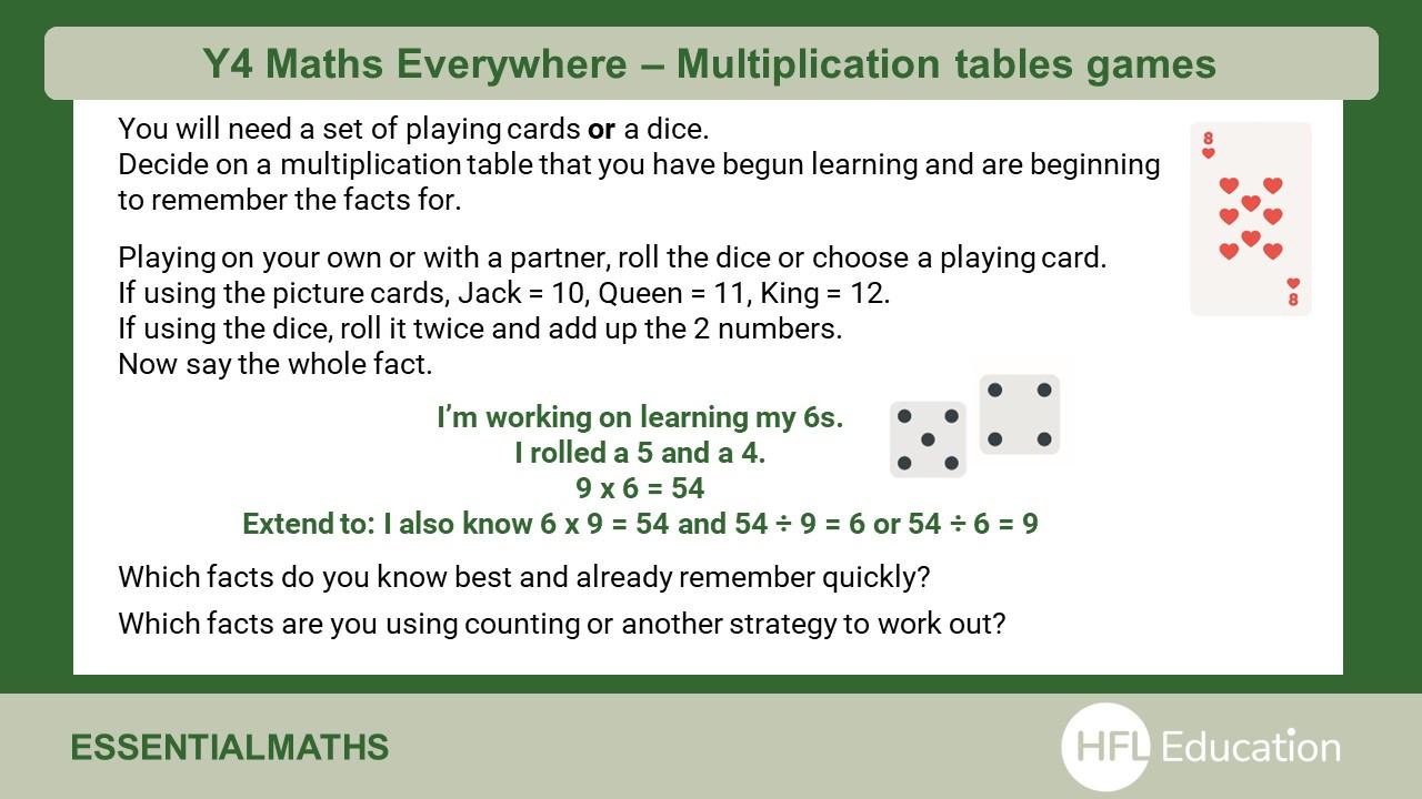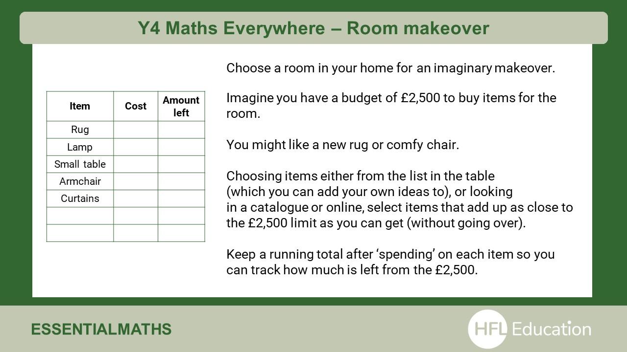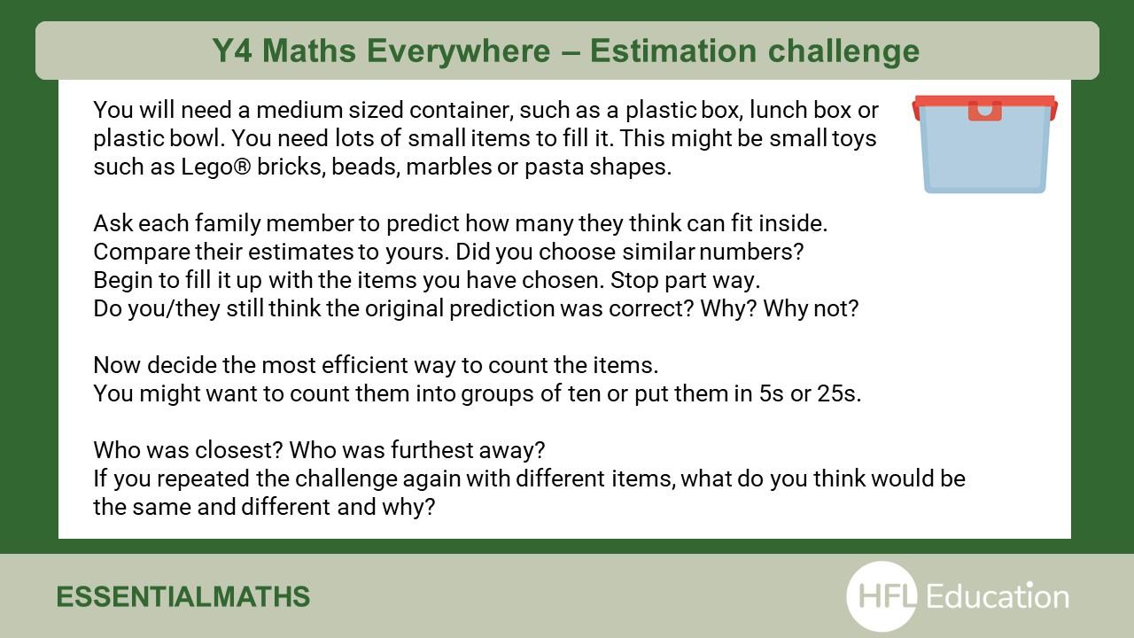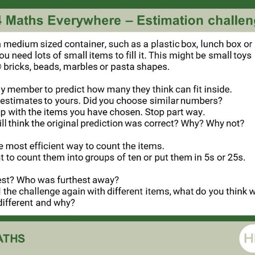 Take a look at the ideas below to find fun ways to engage your child with maths at home. Use these activities to practise key skills and help your child to secure essential knowledge. Most of the tasks require minimal set-up with just a few items that you can find around the home.