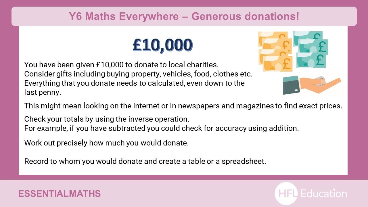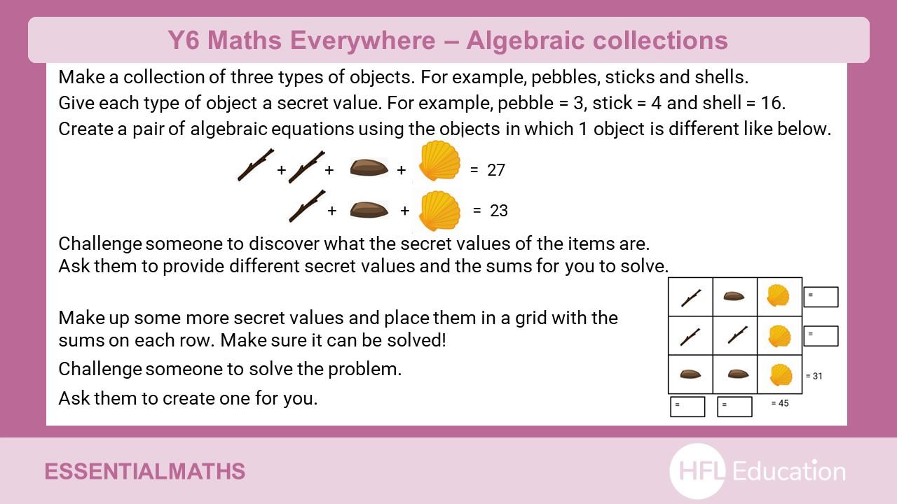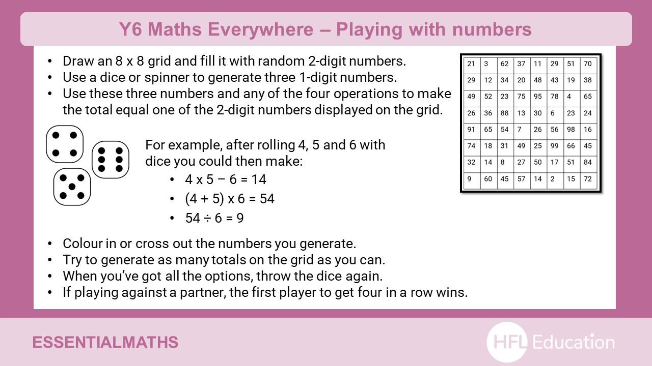 Take a look at the ideas below to find fun ways to engage your child with maths at home. Use these activities to practise key skills and help your child to secure essential knowledge. Most of the tasks require minimal set-up with just a few items that you can find around the home.